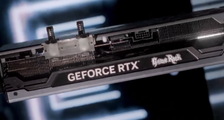 Компания поделилась в соцсетях 12-секундным роликом, на котором запечатлена одна из карт серии NVIDIA GeForce RTX 40 в исполнении Game Rock с тремя вентиляторами и водоблоком. Судя по всему, видеокарта использует гибридное охлаждение
