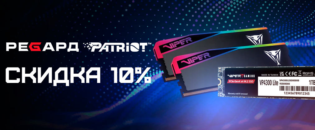 - Скидки 10% на продукцию Patriot Memory!