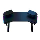 игровой стол, материал столешницы: ЛДСП, металлический каркас, нагрузка до 110 кг, подсветка, подстаканник, отверстия для кабелей, держатель для геймпадов