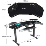 игровой стол, материал столешницы: ЛДСП, металлический каркас, нагрузка до 80 кг, регулировка по высоте, подстаканник, держатель для наушников, полка для монитора