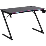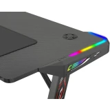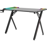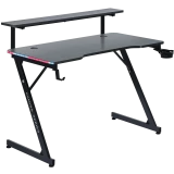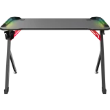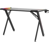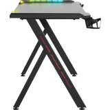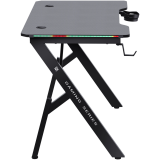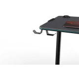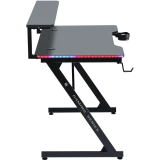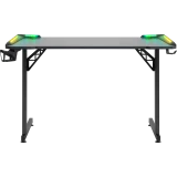 игровой стол, материал столешницы: ЛДСП, металлический каркас, нагрузка до 120 кг, подсветка, подстаканник, держатель для наушников, отделение для аксессуаров, отверстия для кабелей