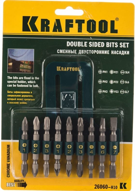 Доставка в 75000 населённых пунктов, ТК СДЭК, Яндекс и Почта РФ Все формы оплаты для физических и юридических лиц! Онлайн конфигуратор ПК, бесплатная сборка. Гарантия 2 года! Широкий ассортимент комплектующих. Более 30 лет на рынке! ID товара: 1001359 Набор бит KRAFTOOL 26060-H10 ОсновныеПроизводитель ........................................................................................................................................................................................................ Код производителя ........................................................................................................................................................................................................ 26060-H10 Тип ........................................................................................................................................................................................................ биты Назначение ........................................................................................................................................................................................................ для шуруповёртов/дрелей/отвёрток Длина ........................................................................................................................................................................................................ 65 мм Тип крепления бура/сверла ........................................................................................................................................................................................................ шестигранный хвостовик (HEX) Количество ........................................................................................................................................................................................................ 9 шт. Дополнительная информация ........................................................................................................................................................................................................ двухсторонние биты PZ1, PZ2, PZ3, SL4, SL6, SL7, PH1, PH2, PH3 ДополнительноСайт производителя ........................................................................................................................................................................................................ |