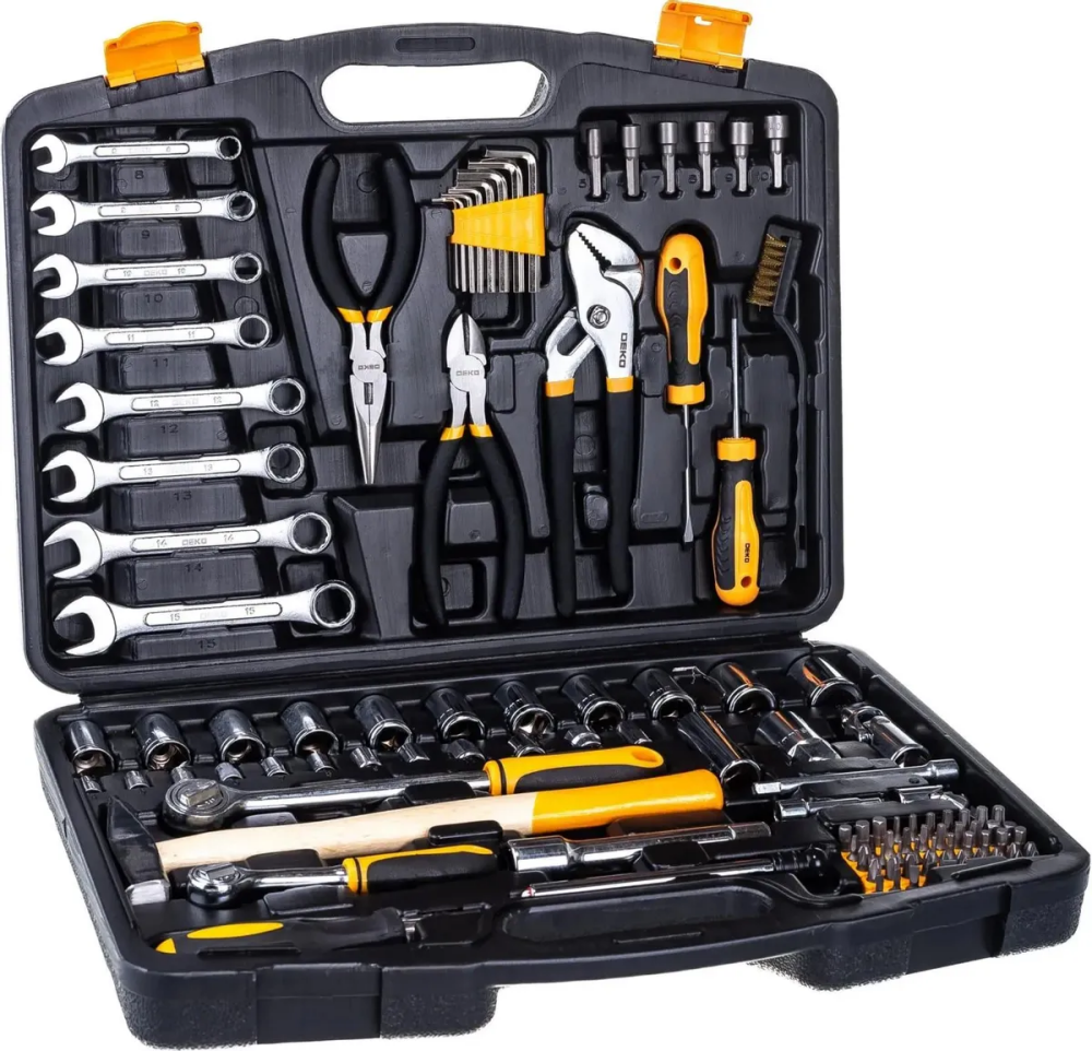Доставка в 75000 населённых пунктов, ТК СДЭК, Яндекс и Почта РФ Все формы оплаты для физических и юридических лиц! Онлайн конфигураторы ПК и сервера, бесплатная сборка. Гарантия 2 года! Широкий ассортимент комплектующих. Более 30 лет на рынке! 4 900 ₽ ID товара: 1006781 Набор инструментов DEKO DKMT113 ОсновныеПроизводитель ........................................................................................................................................................................................................ Код производителя ........................................................................................................................................................................................................ 065-0740 Тип набора ........................................................................................................................................................................................................ Количество предметов в наборе ........................................................................................................................................................................................................ 113 шт. Инструменты в комплекте ........................................................................................................................................................................................................ биты, бокорезы, головки торцевые, ключи гаечные (комбинированные), ключи шестигранные, молоток, отвёртка, плоскогубцы, удлинитель, шарнир ОтвёрткиФорма наконечника отвёрток ........................................................................................................................................................................................................ Phillips (PH), Slotted (SL) БитыФорма наконечника бит ........................................................................................................................................................................................................ Phillips (PH), Pozidriv (PZ), Torx (T, Tx), квадрат (SQ, S), шестигранный (HEX, HEX-HOLE) Гаечные ключиРазмер ключей ........................................................................................................................................................................................................ 8 мм, 9 мм, 10 мм, 11 мм, 12 мм, 13 мм, 14 мм, 15 мм Торцевые головкиРазмер торцевых головок ........................................................................................................................................................................................................ 4-32 мм ДополнительноУпаковка ........................................................................................................................................................................................................ Гарантия ........................................................................................................................................................................................................ официальная гарантия производителя Сайт производителя ........................................................................................................................................................................................................ |