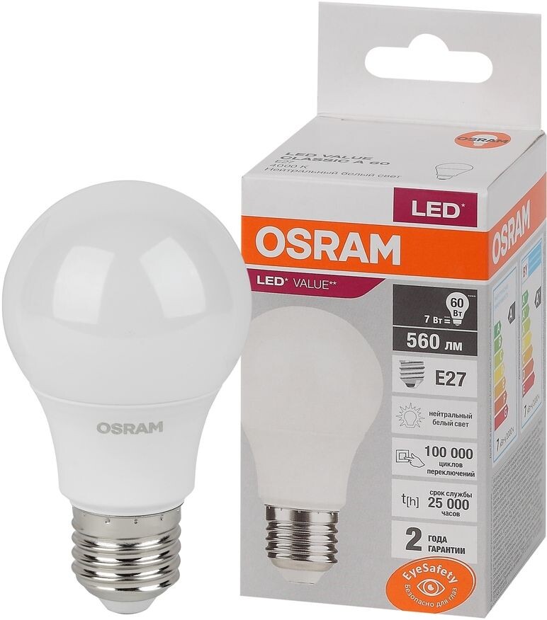 Доставка в 75000 населённых пунктов, ТК СДЭК, Яндекс и Почта РФ Все формы оплаты для физических и юридических лиц! Онлайн конфигураторы ПК и сервера, бесплатная сборка. Гарантия 2 года! Широкий ассортимент комплектующих. Более 30 лет на рынке! ID товара: 1010350 Светодиодная лампочка OSRAM 4058075578760 (7 Вт, E27) ОсновныеПроизводитель ........................................................................................................................................................................................................ Код производителя ........................................................................................................................................................................................................ 4058075578760 Форма ........................................................................................................................................................................................................ Цоколь ........................................................................................................................................................................................................ Мощность ........................................................................................................................................................................................................ 7 Вт Цветовая температура ........................................................................................................................................................................................................ 4000 K Световой поток ........................................................................................................................................................................................................ 560 Лм Цвет свечения ........................................................................................................................................................................................................ Высота/длина лампы ........................................................................................................................................................................................................ 103 мм Напряжение ........................................................................................................................................................................................................ 220 В ДополнительноСрок службы ........................................................................................................................................................................................................ 25000 ч Количество ........................................................................................................................................................................................................ 1 шт. Гарантия ........................................................................................................................................................................................................ официальная гарантия производителя Сайт производителя ........................................................................................................................................................................................................ |