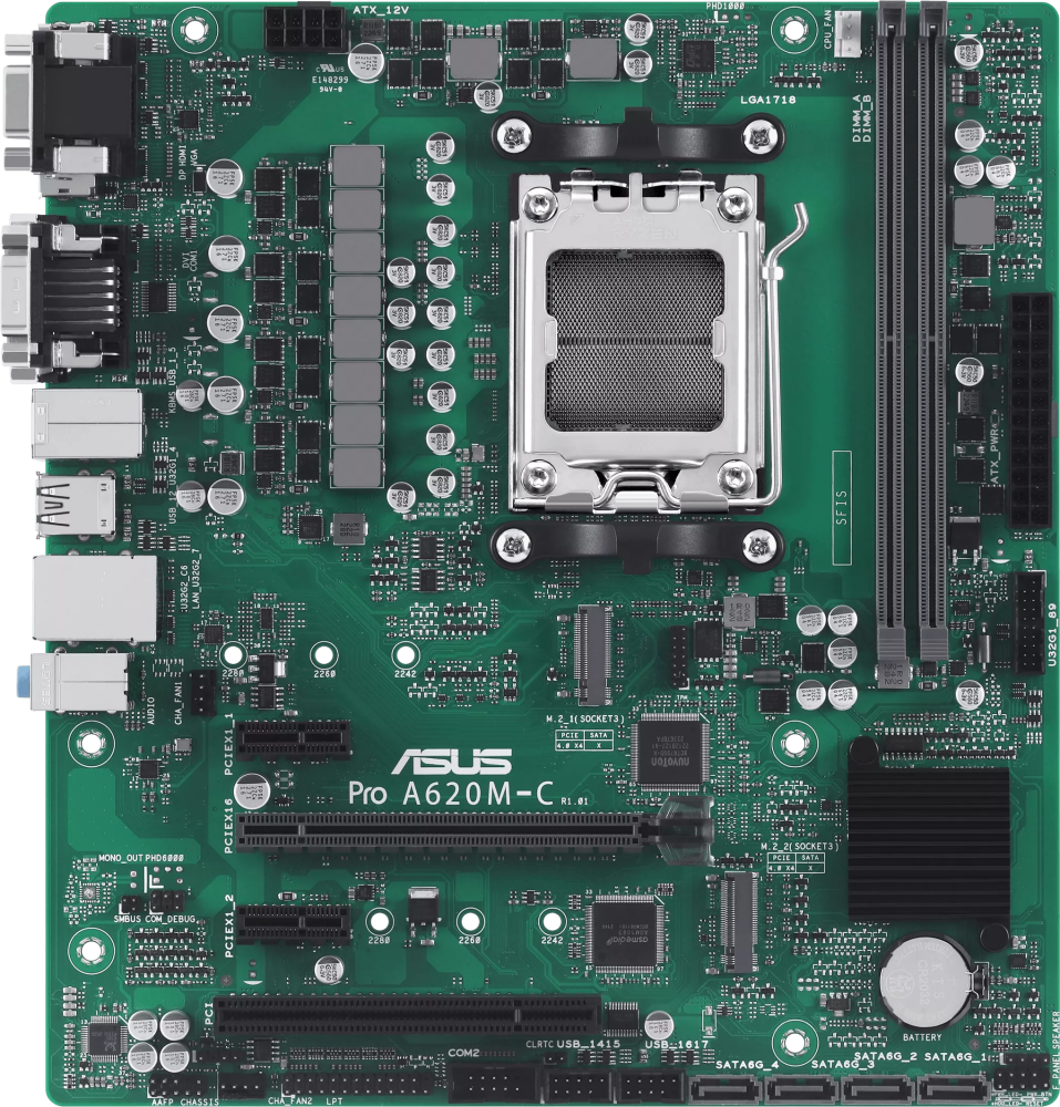 Доставка в 75000 населённых пунктов, ТК СДЭК, Яндекс и Почта РФ Все формы оплаты для физических и юридических лиц! Онлайн конфигураторы ПК и сервера, бесплатная сборка. Гарантия 2 года! Широкий ассортимент комплектующих. Более 30 лет на рынке! ID товара: 10390 Материнская плата ASUS PRO A620M-C-CSM ОсновныеПроизводитель ........................................................................................................................................................................................................ Код производителя ........................................................................................................................................................................................................ PRO A620M-C-CSM Сокет ........................................................................................................................................................................................................ Чипсет ........................................................................................................................................................................................................ ПамятьТип памяти ........................................................................................................................................................................................................ Количество слотов памяти ........................................................................................................................................................................................................ Дисковые контроллерыКонтроллер SATA ........................................................................................................................................................................................................ 4 x SATA-III (6 Гб/с) Поддержка RAID ........................................................................................................................................................................................................ 0, 1, 10 Слоты расширенияСлоты расширения ........................................................................................................................................................................................................ PCI-E 4.0 x16, 2 x PCI-E x1, PCI, 2 x PCI-E M.2 Тип слотов M.2 ........................................................................................................................................................................................................ - Key M, 2242/2260/2280 (PCIe 4.0 x4); - Key M, 2242/2260/2280 (PCIe 4.0 x4). Аудио/ВидеоИнтегрированное видео ........................................................................................................................................................................................................ Звук ........................................................................................................................................................................................................ Аудио-контроллер ........................................................................................................................................................................................................ СетьСетевой интерфейс ........................................................................................................................................................................................................ Gigabit Ethernet (1 Гбит/с) Сетевой контроллер ........................................................................................................................................................................................................ Realtek ИнтерфейсыРазъёмы на задней панели ........................................................................................................................................................................................................ PS/2, 3 x USB 2.0, USB 3.2 Gen1, USB 3.2 Gen2, USB 3.2 Gen2 Type-C, VGA, DVI, HDMI, DisplayPort, RJ-45, COM ДополнительноРазъёмы для подключения вентиляторов корпуса ........................................................................................................................................................................................................ 2 x 4-pin Разъём питания ATX 12 В ........................................................................................................................................................................................................ 8-pin Внутренние разъёмы USB на плате ........................................................................................................................................................................................................ 2 x USB 2.0, USB 3.2 Gen1 Форм-фактор ........................................................................................................................................................................................................ Тип поставки ........................................................................................................................................................................................................ Цвета, использованные в 