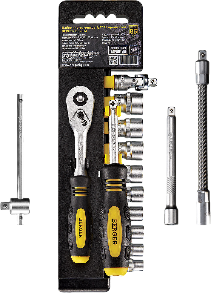 Доставка в 75000 населённых пунктов, ТК СДЭК, Яндекс и Почта РФ Все формы оплаты для физических и юридических лиц! Онлайн конфигураторы ПК и сервера, бесплатная сборка. Гарантия 2 года! Широкий ассортимент комплектующих. Более 30 лет на рынке! 2 800 ₽ ID товара: 1041103 Набор инструментов BERGER BG2034 ОсновныеПроизводитель ........................................................................................................................................................................................................ Код производителя ........................................................................................................................................................................................................ BG2034 Тип набора ........................................................................................................................................................................................................ Количество предметов в наборе ........................................................................................................................................................................................................ 15 шт. Инструменты в комплекте ........................................................................................................................................................................................................ 3 x удлинитель, 9 x головки торцевые, кардан, рукоятка, трещотка Торцевые головкиПрисоединительный размер ........................................................................................................................................................................................................ 1/4" Размер торцевых головок ........................................................................................................................................................................................................ 6-14 мм ДополнительноУпаковка ........................................................................................................................................................................................................ Гарантия ........................................................................................................................................................................................................ официальная гарантия производителя Сайт производителя ........................................................................................................................................................................................................ |