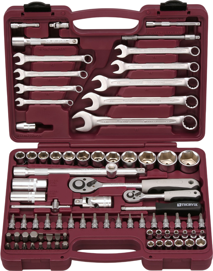 Доставка в 75000 населённых пунктов, ТК СДЭК, Яндекс и Почта РФ Все формы оплаты для физических и юридических лиц! Онлайн конфигуратор ПК, бесплатная сборка. Гарантия 2 года! Широкий ассортимент комплектующих. Более 30 лет на рынке! 8 040 ₽ ID товара: 1041446 Набор инструментов Thorvik UTS0082 ОсновныеПроизводитель ........................................................................................................................................................................................................ Код производителя ........................................................................................................................................................................................................ UTS0082 Тип набора ........................................................................................................................................................................................................ Количество предметов в наборе ........................................................................................................................................................................................................ 82 шт. Инструменты в комплекте ........................................................................................................................................................................................................ 2 x головки свечные, 2 x кардан, 2 x трещотка, 25 x головки торцевые, 3 x адаптер, 32 x биты, 5 x удлинитель, 9 x ключи гаечные (комбинированные), вороток, рукоятка БитыФорма наконечника бит ........................................................................................................................................................................................................ 10 x Torx (T, Tx), 4 x Phillips (PH), 4 x Pozidriv (PZ), 6 x Slotted (SL), 8 x шестигранный (HEX, HEX-HOLE) Биты подробно ........................................................................................................................................................................................................ 7.9 мм (5/16"): - PH: PH3, PH4; - PZ: PZ3, PZ4; - T: T40, T45, T50, Т55; - HEX: H8, H10, H12, H14; - SL: SL8, SL10, SL12; 6.35 мм (1/4"): - PH: PH1, PH2; - PZ: PZ1, PZ2; - T: T8, T10, T15, Т20, Т25, Т30; - HEX: H3, H4, H5, H6; - SL: SL4, SL5.5, SL7 Гаечные ключиРазмер ключей ........................................................................................................................................................................................................ 8 мм, 10 мм, 11 мм, 12 мм, 13 мм, 14 мм, 17 мм, 19 мм, 22 мм Торцевые головкиПрисоединительный размер ........................................................................................................................................................................................................ 12 x 1/2", 13 x 1/4" Размер торцевых головок ........................................................................................................................................................................................................ 4-14 мм, 1/4"; 14-32 мм, 1/2" ДополнительноУпаковка ........................................................................................................................................................................................................ Дополнительная информация ........................................................................................................................................................................................................ в комплект также входят: трещоточная рукоятка 1/4" (150 мм 48 зубцов), трещоточная рукоятка 1/2" (250 мм 48 зубцов), вороток Т-образный 1/4" (110 мм), шарнир карданный 1/4" (35 мм), шарнир карданный 1/2" (70 мм), 2х удлинитель 1/4" (50 мм, 100 мм), 2х удлинитель 1/2" (125 мм, 250 мм), гибкий удлинитель 1/4" (150 мм), отвёрточная рукоятка 1/4" (150 мм), адаптер для вставок-бит 1/4" х 1/4"Н, адаптер для вставок-бит 1/2" х 5/16”H, адаптер трёхсторонний 1/2", 2х свечная головка 1/2" (16 мм, 21 мм) Гарантия ........................................................................................................................................................................................................ официальная гарантия производителя Сайт производителя ........................................................................................................................................................................................................ |