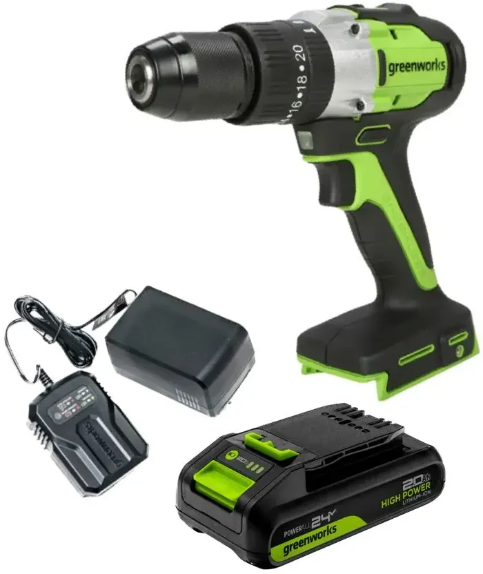 | Доставка в 75000 населённых  пунктов, ТК СДЭК, Яндекс и Почта РФ Все формы оплаты для  физических и юридических лиц! Онлайн конфигуратор ПК,  бесплатная сборка. Гарантия 2 года! Широкий ассортимент  комплектующих. Более 30 лет на рынке! 9 850 ₽ ID товара: 1043561 Дрель-шуруповёрт Greenworks 3704107CUA ОсновныеПроизводитель  ........................................................................................................................................................................................................ Код производителя  ........................................................................................................................................................................................................ 3704107CUA Тип инструмента  ........................................................................................................................................................................................................ Наличие удара  ........................................................................................................................................................................................................ Тип патрона  ........................................................................................................................................................................................................ Диаметр патрона  ........................................................................................................................................................................................................ 2-13 мм Количество скоростей работы  ........................................................................................................................................................................................................ 2 Макс. количество ударов в минуту  ........................................................................................................................................................................................................ 29000 уд/мин Макс. число оборотов холостого хода  ........................................................................................................................................................................................................ 1700 об/мин Максимальный крутящий момент  ........................................................................................................................................................................................................ 60 Н·м Макс. диаметр сверления (дерево)  ........................................................................................................................................................................................................ 38 мм Макс. диаметр сверления (кирпич)  ........................................................................................................................................................................................................ 13 мм Макс. диаметр сверления (металл)  ........................................................................................................................................................................................................ 13 мм Макс. диаметр сверления (бетон)  ........................................................................................................................................................................................................ 13 мм Функции и возможностиРежимы работы  ........................................................................................................................................................................................................ сверление, сверление с ударом Возможности  ........................................................................................................................................................................................................ бесщёточный двигатель, защита от перегрева, защита от перегрузок, реверс, тормоз двигателя ПитаниеТип питания  ........................................................................................................................................................................................................ Тип аккумулятора  ........................................................................................................................................................................................................ Li-Ion Напряжение аккумулятора  ........................................................................................................................................................................................................ 24 В Ёмкость аккумулятора  ........................................................................................................................................................................................................ 2 А*ч Количество аккумуляторов в комплекте  .......................................................................................