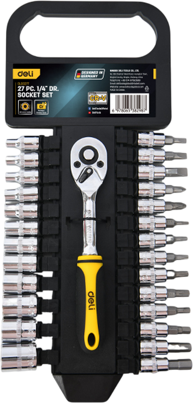 Доставка в 75000 населённых пунктов, ТК СДЭК, Яндекс и Почта РФ Все формы оплаты для физических и юридических лиц! Онлайн конфигуратор ПК, бесплатная сборка. Гарантия 2 года! Широкий ассортимент комплектующих. Более 30 лет на рынке! 2 120 ₽ ID товара: 1044364 Набор инструментов Deli DL0027T ОсновныеПроизводитель ........................................................................................................................................................................................................ Код производителя ........................................................................................................................................................................................................ DL0027T Тип набора ........................................................................................................................................................................................................ Количество предметов в наборе ........................................................................................................................................................................................................ 27 шт. Инструменты в комплекте ........................................................................................................................................................................................................ 12 x головки торцевые, 14 x биты-головки, трещотка БитыФорма наконечника бит ........................................................................................................................................................................................................ 2 x Phillips (PH), 3 x Slotted (SL), 4 x шестигранный (HEX, HEX-HOLE), 5 x Torx (T, Tx) Биты подробно ........................................................................................................................................................................................................ 6.35 мм (1/4"): - SL: SL4, SL5.5, SL7; - PH: PH1, PH2; - T: T10, T15, T20, T25, T30; - HEX: H4, H5, H6, H7 Торцевые головкиПрисоединительный размер ........................................................................................................................................................................................................ 1/4" Размер торцевых головок ........................................................................................................................................................................................................ 4-14 мм ДополнительноГарантия ........................................................................................................................................................................................................ официальная гарантия производителя Сайт производителя ........................................................................................................................................................................................................ |