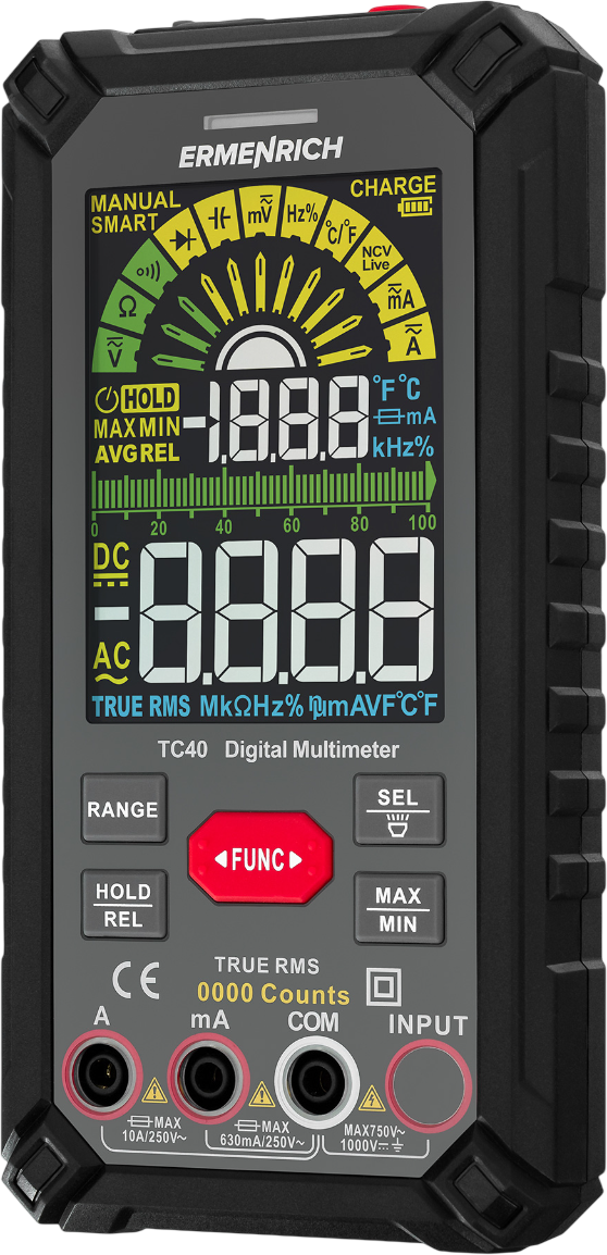 Доставка в 75000 населённых пунктов, ТК СДЭК, Яндекс и Почта РФ Все формы оплаты для физических и юридических лиц! Онлайн конфигураторы ПК и сервера, бесплатная сборка. Гарантия 2 года! Широкий ассортимент комплектующих. Более 30 лет на рынке! 7 010 ₽ ID товара: 1045512 Мультиметр ERMENRICH Zing TC40 ОсновныеПроизводитель ........................................................................................................................................................................................................ Код производителя ........................................................................................................................................................................................................ 82992 Тип ........................................................................................................................................................................................................ Тип отображения ........................................................................................................................................................................................................ Подсветка ........................................................................................................................................................................................................ да Функции ........................................................................................................................................................................................................ "прозвонка", автоотключение, диод-тест, индикация перегрузки, индикация полярности, индикация разряда батареи, фиксация показаний Постоянное напряжение ........................................................................................................................................................................................................ 0.099-999.9 В Переменное напряжение ........................................................................................................................................................................................................ 0.099-750 В Постоянный ток ........................................................................................................................................................................................................ 0.009-0.6 А, 1-ый диапазон измерений; 9.999 А, 2-ой диапазон измерений Переменный ток ........................................................................................................................................................................................................ 0.009-0.6 A, 1-ый диапазон измерений; 9.999 А, 2-ой диапазон измерений Сопротивление ........................................................................................................................................................................................................ 0.0009-9.999 МОм, 1-ый диапазон измерений; 99.99 МОм, 2-ой диапазон измерений Ёмкость ........................................................................................................................................................................................................ 0.009-999.9 мкФ, 1-ый диапазон измерений; 9999-99990 мкФ, 2-ой диапазон измерений Частота ........................................................................................................................................................................................................ 9.999-9999000 Гц Измерение температуры ........................................................................................................................................................................................................ да Количество отсчётов ........................................................................................................................................................................................................ 10000 Питание ........................................................................................................................................................................................................ встроенный аккумулятор Дополнительная информация ........................................................................................................................................................................................................ ▪ литий-ионный аккумулятор на 1400 мАч; ▪ функция автоматического распознавания (Smart); ▪ функция запоминания предельных значений (Min/Max); ▪ истинное среднеквадратичное значение (True RMS); ▪ бесконтактное обнаружение напряжения (NCV); ▪ встроенный фонарик ДополнительноГарантия ........................................................................................................................................................................................................ официальная гарантия произво