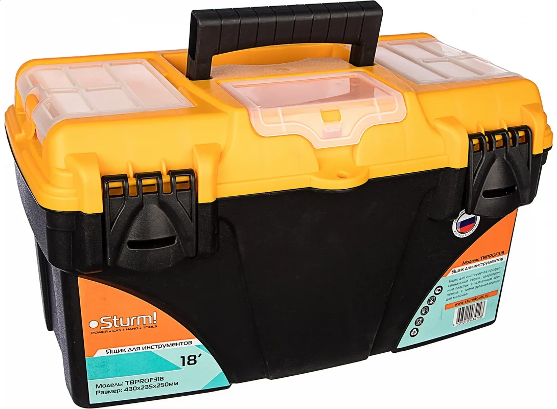 Доставка в 75000 населённых пунктов, ТК СДЭК, Яндекс и Почта РФ Все формы оплаты для физических и юридических лиц! Онлайн конфигуратор ПК, бесплатная сборка. Гарантия 2 года! Широкий ассортимент комплектующих. Более 30 лет на рынке! 1 830 ₽ ID товара: 1046360 Ящик для инструментов Sturm! TBPROF318 ОсновныеПроизводитель ........................................................................................................................................................................................................ Код производителя ........................................................................................................................................................................................................ TBPROF318 Тип ........................................................................................................................................................................................................ Назначение ........................................................................................................................................................................................................ для крепежа, ручной инструмент, универсальное, электроинструмент Материал ........................................................................................................................................................................................................ пластик Ручка для переноски ........................................................................................................................................................................................................ да Замок ........................................................................................................................................................................................................ пластиковый Количество отделений ........................................................................................................................................................................................................ 5 Размер ........................................................................................................................................................................................................ 430 x 250 x 235 мм (25 л) ДополнительноГарантия ........................................................................................................................................................................................................ официальная гарантия производителя Сайт производителя ........................................................................................................................................................................................................ |