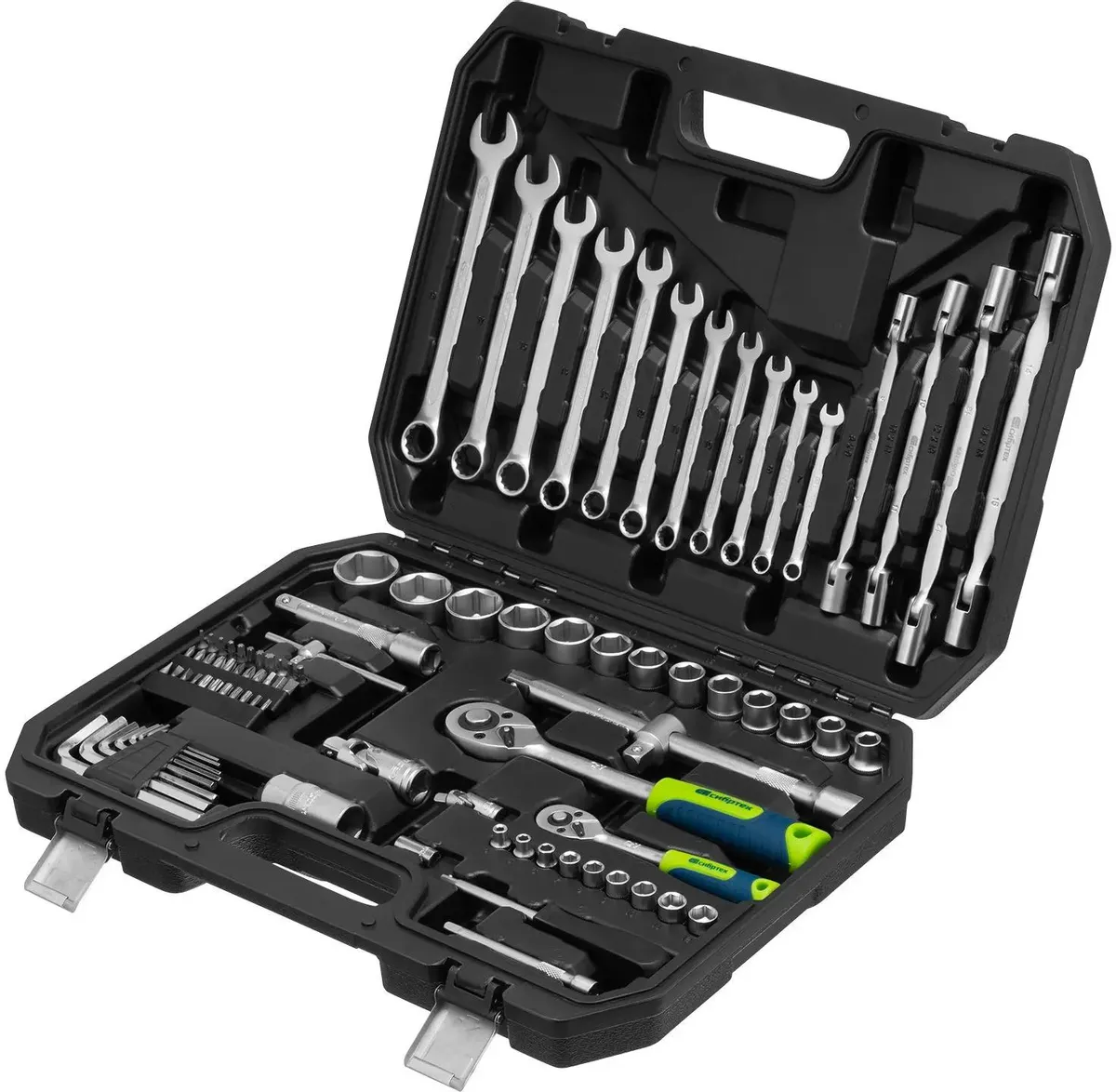 Доставка в 75000 населённых пунктов, ТК СДЭК, Яндекс и Почта РФ Все формы оплаты для физических и юридических лиц! Онлайн конфигураторы ПК и сервера, бесплатная сборка. Гарантия 2 года! Широкий ассортимент комплектующих. Более 30 лет на рынке! 8 240 ₽ ID товара: 1047326 Набор инструментов Сибртех 13396 ОсновныеПроизводитель ........................................................................................................................................................................................................ Код производителя ........................................................................................................................................................................................................ 13396 Тип набора ........................................................................................................................................................................................................ Количество предметов в наборе ........................................................................................................................................................................................................ 89 шт. Инструменты в комплекте ........................................................................................................................................................................................................ 11 x ключи гаечные (комбинированные), 2 x кардан, 2 x трещотка, 2 x удлинитель, 22 x головки торцевые, 33 x биты, 4 x ключи торцевые, 8 x ключи шестигранные, адаптер, вороток, головки свечные, переходник, рукоятка БитыФорма наконечника бит ........................................................................................................................................................................................................ Phillips (PH), Pozidriv (PZ), Slotted (SL), Torx (T, Tx), Torx (TT, TH), шестигранный (HEX, HEX-HOLE) Биты подробно ........................................................................................................................................................................................................ биты 1/4" HEX: H2, H3, H4, H5, H6; биты 1/4" Torx (T): T8, T10, T15, T20, T25, T27, T30, T40; биты 1/4" Torx (TT): TT10, T15, T20, TT25, T27, T30, TT40; биты 1/4" SL: SL3, SL4 x2, SL5.5, SL6; биты 1/4" PH: PH0, PH1, PH2 x2, PH3; биты 1/4" PZ: PZ1, PZ2, PZ3 Шарнирно-губцевый инструментШарнирно-губцевый инструмент подробно ........................................................................................................................................................................................................ 4 торцевых шарнирных ключа: 8x9, 10x11, 12x13, 14x15 мм Гаечные ключиРазмер ключей ........................................................................................................................................................................................................ 7 мм, 8 мм, 9 мм, 10 мм, 11 мм, 12 мм, 13 мм, 14 мм, 15 мм, 17 мм, 19 мм Шестигранные ключиРазмер ключей ........................................................................................................................................................................................................ 1 мм, 1.5 мм, 2 мм, 2.5 мм, 3 мм, 4 мм, 5 мм Торцевые головкиПрисоединительный размер ........................................................................................................................................................................................................ 1/2", 1/4" Размер торцевых головок ........................................................................................................................................................................................................ 4-32 мм ДополнительноУпаковка ........................................................................................................................................................................................................ Гарантия ........................................................................................................................................................................................................ официальная гарантия производителя Сайт производителя ........................................................................................................................................................................................................ |