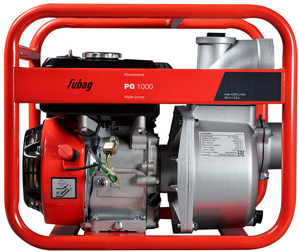 Доставка в 75000 населённых пунктов, ТК СДЭК, Яндекс и Почта РФ Все формы оплаты для физических и юридических лиц! Онлайн конфигураторы ПК и сервера, бесплатная сборка. Гарантия 2 года! Широкий ассортимент комплектующих. Более 30 лет на рынке! 20 980 ₽ ID товара: 1049794 Мотопомпа Fubag PG 1000 ОсновныеПроизводитель ........................................................................................................................................................................................................ Код производителя ........................................................................................................................................................................................................ 838751 Тип двигателя ........................................................................................................................................................................................................ бензиновый Качество воды ........................................................................................................................................................................................................ слабозагрязнённая, чистая Глубина всасывания ........................................................................................................................................................................................................ 8 м Высота подъёма (напор) ........................................................................................................................................................................................................ 28 м Производительность ........................................................................................................................................................................................................ 1000 л/мин Диаметр патрубков шланга ........................................................................................................................................................................................................ 80 мм Пропускная способность ........................................................................................................................................................................................................ 60 м³/ч Объём двигателя ........................................................................................................................................................................................................ 212 см³ Мощность (л.с.) ........................................................................................................................................................................................................ 5.7 Мощность (Вт) ........................................................................................................................................................................................................ 4200 Объём масляного бака ........................................................................................................................................................................................................ 0.6 л Объём топливного бака ........................................................................................................................................................................................................ 3.5 л Тактность двигателя ........................................................................................................................................................................................................ 4-тактный Тип стартера ........................................................................................................................................................................................................ ручной Марка бензина ........................................................................................................................................................................................................ АИ-92 Допустимый диаметр твердых частиц ........................................................................................................................................................................................................ 4 мм ДополнительноКомплектация ........................................................................................................................................................................................................ мотопомпа, фильтр для воды, отвёртка, свечной ключ, патрубок (2 шт.), гайка (2 шт.), прокладка (2 шт.) Дополнительная информация ........................................................................................................................................................................................................ • время работы на одной заправке: 3.2 ч, • датчик уровня масла Вес ........................................................................................................................................................................................................ 25 кг Гарантия ...