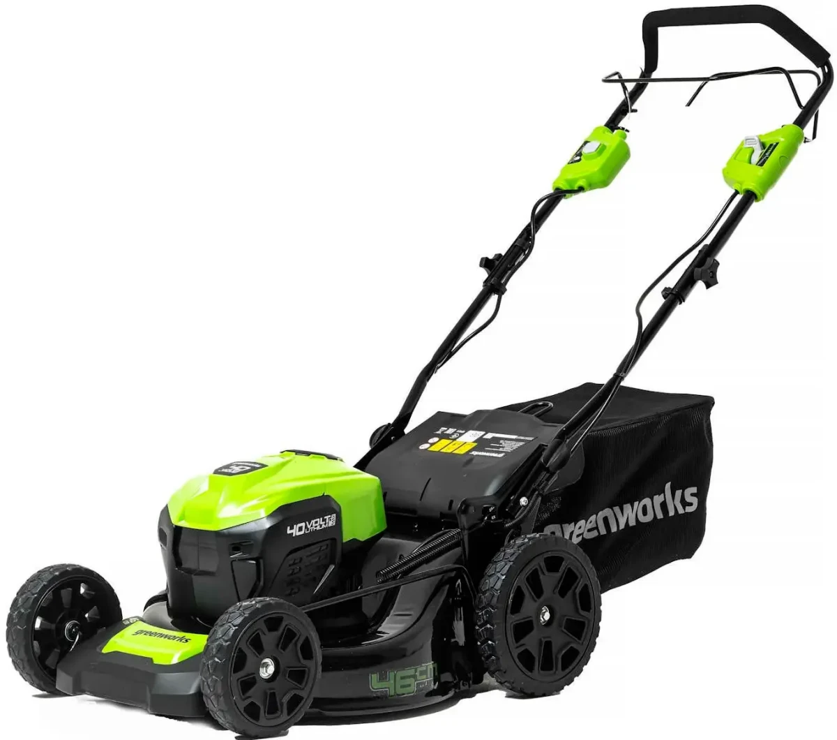 Доставка в 75000 населённых пунктов, ТК СДЭК, Яндекс и Почта РФ Все формы оплаты для физических и юридических лиц! Онлайн конфигураторы ПК и сервера, бесплатная сборка. Гарантия 2 года! Широкий ассортимент комплектующих. Более 30 лет на рынке! 38 500 ₽ ID товара: 1050455 Газонокосилка Greenworks GD40LM46SPK5 ОсновныеПроизводитель ........................................................................................................................................................................................................ Код производителя ........................................................................................................................................................................................................ 2506807UG Тип ........................................................................................................................................................................................................ Ширина обработки ........................................................................................................................................................................................................ 46 см Высота скашивания ........................................................................................................................................................................................................ 20-55 мм Травосборник ........................................................................................................................................................................................................ мягкий Объем травосборника ........................................................................................................................................................................................................ 55 л Уровень шума ........................................................................................................................................................................................................ 93 дБ Рекомендуемая площадь скашивания ........................................................................................................................................................................................................ 800 кв.м ДвигательТип двигателя ........................................................................................................................................................................................................ Работа от аккумулятора ........................................................................................................................................................................................................ да Тип аккумулятора ........................................................................................................................................................................................................ Li-Ion Напряжение аккумулятора ........................................................................................................................................................................................................ 40 В Емкость аккумулятора ........................................................................................................................................................................................................ 5 А·ч Аккумулятор в комплекте ........................................................................................................................................................................................................ да ФункциональностьКонструктивные особенности ........................................................................................................................................................................................................ складная ручка Мульчирование ........................................................................................................................................................................................................ да Регулировка высоты скашивания ........................................................................................................................................................................................................ да Число уровней высоты скашивания ........................................................................................................................................................................................................ 7 Выброс травы ........................................................................................................................................................................................................ в травосборник, вбок, назад КонструкцияМатериал корпуса ........................................................................................................................................................................................................ пластик Количество колёс .............................................................................................................................................................