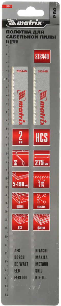 Доставка в 75000 населённых пунктов, ТК СДЭК, Яндекс и Почта РФ Все формы оплаты для физических и юридических лиц! Онлайн конфигураторы ПК и сервера, бесплатная сборка. Гарантия 2 года! Широкий ассортимент комплектующих. Более 30 лет на рынке! 890 ₽ ID товара: 1050565 Полотно для сабельной пилы Matrix 782011 ОсновныеПроизводитель ........................................................................................................................................................................................................ Код производителя ........................................................................................................................................................................................................ 782011 Назначение ........................................................................................................................................................................................................ Материал распиловки ........................................................................................................................................................................................................ ДСП, дерево, пластик, пластмасса, фанера Длина ........................................................................................................................................................................................................ 300 мм Рабочая длина ........................................................................................................................................................................................................ 275 мм Количество зубьев на один дюйм ........................................................................................................................................................................................................ 6 TPI Шаг зубьев ........................................................................................................................................................................................................ 4.3 мм Количество ........................................................................................................................................................................................................ 2 шт. ДополнительноСайт производителя ........................................................................................................................................................................................................ |