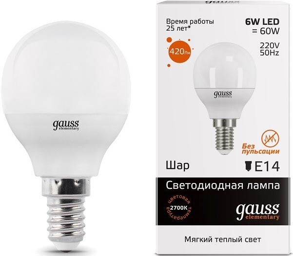 Доставка в 75000 населённых пунктов, ТК СДЭК, Яндекс и Почта РФ Все формы оплаты для физических и юридических лиц! Онлайн конфигуратор ПК, бесплатная сборка. Гарантия 2 года! Широкий ассортимент комплектующих. Более 30 лет на рынке! 270 ₽ ID товара: 1180238 Светодиодная лампочка Gauss Elementary Globe (6 Вт, E14) ОсновныеПроизводитель ........................................................................................................................................................................................................ Код производителя ........................................................................................................................................................................................................ 53116 Форма ........................................................................................................................................................................................................ Цоколь ........................................................................................................................................................................................................ Мощность ........................................................................................................................................................................................................ 6 Вт Цветовая температура ........................................................................................................................................................................................................ 3000 K Световой поток ........................................................................................................................................................................................................ 420 Лм Цвет свечения ........................................................................................................................................................................................................ ДополнительноСрок службы ........................................................................................................................................................................................................ 25000 ч Количество ........................................................................................................................................................................................................ 1 шт. Гарантия ........................................................................................................................................................................................................ официальная гарантия производителя Сайт производителя ........................................................................................................................................................................................................ |