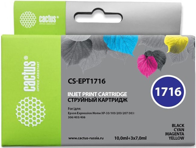 Доставка в 75000 населённых пунктов, ТК СДЭК, Яндекс и Почта РФ Все формы оплаты для физических и юридических лиц! Онлайн конфигураторы ПК и сервера, бесплатная сборка. Гарантия 2 года! Широкий ассортимент комплектующих. Более 30 лет на рынке! 860 ₽ ID товара: 175822 Картридж Cactus CS-EPT1716 Color ОсновныеПроизводитель ........................................................................................................................................................................................................ Код производителя ........................................................................................................................................................................................................ CS-EPT1716 Тип ........................................................................................................................................................................................................ Тип печати ........................................................................................................................................................................................................ Тип совместимости ........................................................................................................................................................................................................ Совместимый производитель ........................................................................................................................................................................................................ Epson Цвет ........................................................................................................................................................................................................ чёрный (black), голубой (cyan), пурпурный (magenta), жёлтый (yellow) Совместимость ........................................................................................................................................................................................................ Epson Expression Home XP-103, Epson Expression Home XP-203, Epson Expression Home XP-207, Epson Expression Home XP-303, Epson Expression Home XP-306, Epson Expression Home XP-33, Epson Expression Home XP-403, Epson Expression Home XP-406 ДополнительноКоличество в упаковке ........................................................................................................................................................................................................ 1 шт. Сайт производителя ........................................................................................................................................................................................................ |