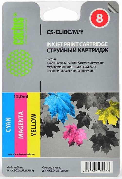 Доставка в 75000 населённых пунктов, ТК СДЭК, Яндекс и Почта РФ Все формы оплаты для физических и юридических лиц! Онлайн конфигураторы ПК и сервера, бесплатная сборка. Гарантия 2 года! Широкий ассортимент комплектующих. Более 30 лет на рынке! 580 ₽ ID товара: 175895 Картридж Cactus CS-CLI8C/M/Y ОсновныеПроизводитель ........................................................................................................................................................................................................ Код производителя ........................................................................................................................................................................................................ CS-CLI8C/M/Y Тип ........................................................................................................................................................................................................ Тип печати ........................................................................................................................................................................................................ Тип совместимости ........................................................................................................................................................................................................ Совместимый производитель ........................................................................................................................................................................................................ Canon Цвет ........................................................................................................................................................................................................ голубой (cyan), пурпурный (magenta), жёлтый (yellow) Совместимость ........................................................................................................................................................................................................ Canon PIXMA iP3300, Canon PIXMA iP3500, Canon PIXMA iP4200, Canon PIXMA iP4300, Canon PIXMA iP5200, Canon PIXMA iP5300, Canon PIXMA iP6600D, Canon PIXMA iP6700D, Canon PIXMA iX4000, Canon PIXMA iX5000, Canon PIXMA MP470, Canon PIXMA MP500, Canon PIXMA MP510 , Canon PIXMA MP520, Canon PIXMA MP530, Canon PIXMA MP600, Canon PIXMA MP800, Canon PIXMA MP810, Canon PIXMA MP830, Canon PIXMA MP970, Canon PIXMA MX700, Canon PIXMA MX850, Canon PIXMA Pro9000, Canon PIXMA Pro9000 Mark II ДополнительноКоличество в упаковке ........................................................................................................................................................................................................ 1 шт. Сайт производителя ........................................................................................................................................................................................................ |
