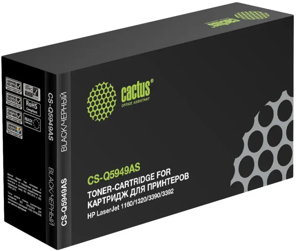 Доставка в 75000 населённых пунктов, ТК СДЭК, Яндекс и Почта РФ Все формы оплаты для физических и юридических лиц! Онлайн конфигураторы ПК и сервера, бесплатная сборка. Гарантия 2 года! Широкий ассортимент комплектующих. Более 30 лет на рынке! 1 040 ₽ ID товара: 177730 Картридж Cactus CS-Q5949AS Black ОсновныеПроизводитель ........................................................................................................................................................................................................ Код производителя ........................................................................................................................................................................................................ CS-Q5949AS Тип ........................................................................................................................................................................................................ Тип печати ........................................................................................................................................................................................................ Тип совместимости ........................................................................................................................................................................................................ Совместимый производитель ........................................................................................................................................................................................................ HP Цвет ........................................................................................................................................................................................................ чёрный (black) Совместимость ........................................................................................................................................................................................................ HP LaserJet 1160, HP LaserJet 1320, HP LaserJet 1320n, HP LaserJet 1320nw, HP LaserJet 1320tn, HP LaserJet 3390, HP LaserJet 3392 ДополнительноРесурс ........................................................................................................................................................................................................ 2500 стр. Количество в упаковке ........................................................................................................................................................................................................ 1 шт. Сайт производителя ........................................................................................................................................................................................................ |