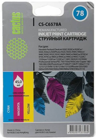 Доставка в 75000 населённых пунктов, ТК СДЭК, Яндекс и Почта РФ Все формы оплаты для физических и юридических лиц! Онлайн конфигуратор ПК, бесплатная сборка. Гарантия 2 года! Широкий ассортимент комплектующих. Более 30 лет на рынке! 2 070 ₽ ID товара: 178969 Картридж Cactus CS-C6578A Color ОсновныеПроизводитель ........................................................................................................................................................................................................ Код производителя ........................................................................................................................................................................................................ CS-C6578A Тип ........................................................................................................................................................................................................ Тип печати ........................................................................................................................................................................................................ Тип совместимости ........................................................................................................................................................................................................ Совместимый производитель ........................................................................................................................................................................................................ HP Цвет ........................................................................................................................................................................................................ голубой (cyan), пурпурный (magenta), жёлтый (yellow) Совместимость ........................................................................................................................................................................................................ HP Deskjet 920, HP Deskjet 930, HP Digital Copier 310, HP OfficeJet 5110, HP Officejet g55, HP Officejet g85, HP Officejet k60, HP Officejet k80, HP Officejet V30, HP Officejet V40, HP Officejet V45, HP Photosmart 1115, HP Photosmart 1215, HP Photosmart 1215vm, HP Photosmart 1218, HP Photosmart 1218xi, HP Photosmart 1315, HP Photosmart p1000, HP Photosmart p1100, HP PSC 720, HP PSC 750, HP PSC 760, HP PSC 950 ДополнительноЁмкость ........................................................................................................................................................................................................ 39 мл Количество в упаковке ........................................................................................................................................................................................................ 1 шт. Вес ........................................................................................................................................................................................................ 0.2 кг Сайт производителя ........................................................................................................................................................................................................ |