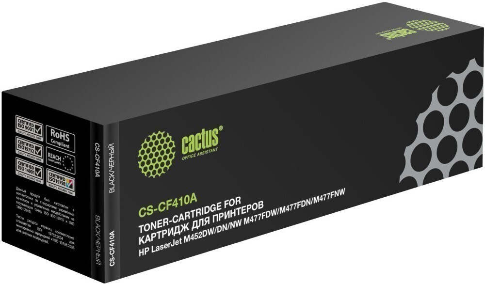 Доставка в 75000 населённых пунктов, ТК СДЭК, Яндекс и Почта РФ Все формы оплаты для физических и юридических лиц! Онлайн конфигураторы ПК и сервера, бесплатная сборка. Гарантия 2 года! Широкий ассортимент комплектующих. Более 30 лет на рынке! 940 ₽ ID товара: 213443 Картридж Cactus CS-CF410A Black ОсновныеПроизводитель ........................................................................................................................................................................................................ Код производителя ........................................................................................................................................................................................................ CS-CF410A Тип ........................................................................................................................................................................................................ Тип печати ........................................................................................................................................................................................................ Тип совместимости ........................................................................................................................................................................................................ Совместимый производитель ........................................................................................................................................................................................................ HP Цвет ........................................................................................................................................................................................................ чёрный (black) Совместимость ........................................................................................................................................................................................................ HP LaserJet Pro M452dn (CF389A), HP LaserJet Pro M452dw (CF394A), HP LaserJet Pro M452nw (CF388A), HP LaserJet Pro M477fdn (CF378A), HP LaserJet Pro M477fdw (CF379A), HP LaserJet Pro M477fnw (CF377A), HP LaserJet Pro MFP M377dw (M5H23A) ДополнительноРесурс ........................................................................................................................................................................................................ 2300 стр. Количество в упаковке ........................................................................................................................................................................................................ 1 шт. Сайт производителя ........................................................................................................................................................................................................ |