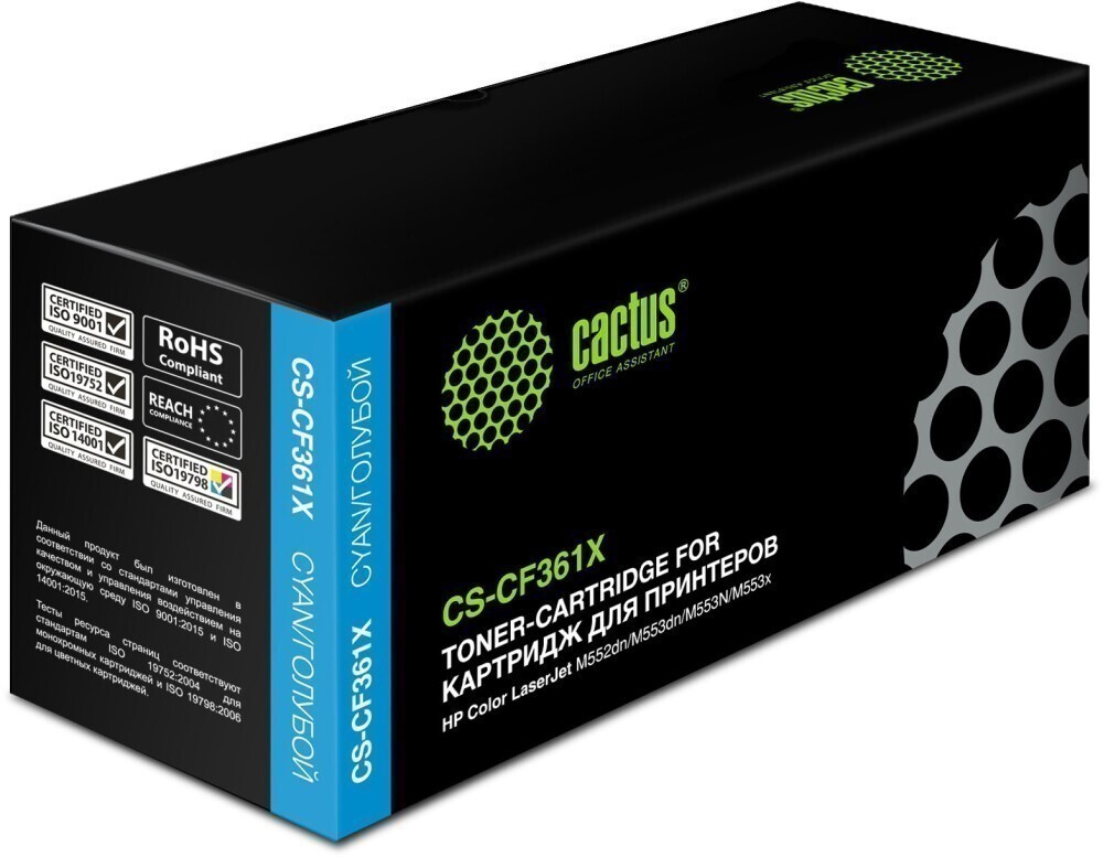 Доставка в 75000 населённых пунктов, ТК СДЭК, Яндекс и Почта РФ Все формы оплаты для физических и юридических лиц! Онлайн конфигураторы ПК и сервера, бесплатная сборка. Гарантия 2 года! Широкий ассортимент комплектующих. Более 30 лет на рынке! 2 120 ₽ ID товара: 224201 Картридж Cactus CS-CF361X Cyan ОсновныеПроизводитель ........................................................................................................................................................................................................ Код производителя ........................................................................................................................................................................................................ CS-CF361X Тип ........................................................................................................................................................................................................ Тип печати ........................................................................................................................................................................................................ Тип совместимости ........................................................................................................................................................................................................ Совместимый производитель ........................................................................................................................................................................................................ HP Цвет ........................................................................................................................................................................................................ голубой (cyan) Совместимость ........................................................................................................................................................................................................ HP Color LaserJet Enterprise M553dh (B5L27A), HP Color LaserJet Managed Flow M577cm (B5L50A), HP Color LaserJet Managed M553dnm (B5L38A), HP Color LaserJet Managed M553xm (B5L39A), HP Color LaserJet Managed M577dnm (B5L49A), HP LaserJet Enterprise 500 M552dn (B5L23A), HP LaserJet Enterprise 500 M553dn (B5L25A), HP LaserJet Enterprise 500 M553n (B5L24A), HP LaserJet Enterprise Flow M577c (B5L54A), HP LaserJet Enterprise M553x (B5L26A), HP LaserJet Enterprise M577dn (B5L46A), HP LaserJet Enterprise M577f (B5L47A), HP LaserJet Enterprise M577z (B5L48A) ДополнительноРесурс ........................................................................................................................................................................................................ 9500 стр. Количество в упаковке ........................................................................................................................................................................................................ 1 шт. Сайт производителя ........................................................................................................................................................................................................ |