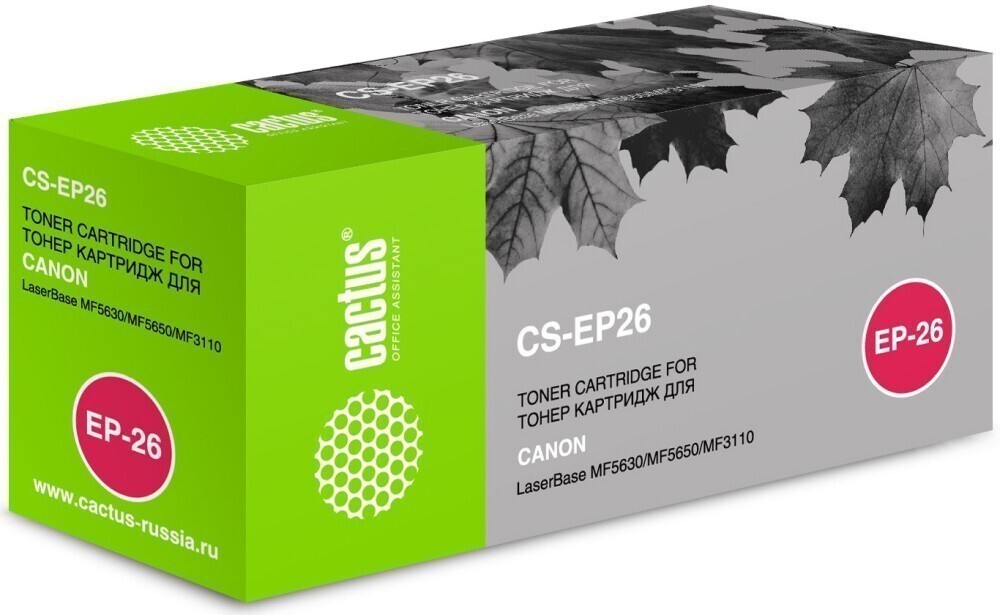 Доставка в 75000 населённых пунктов, ТК СДЭК, Яндекс и Почта РФ Все формы оплаты для физических и юридических лиц! Онлайн конфигураторы ПК и сервера, бесплатная сборка. Гарантия 2 года! Широкий ассортимент комплектующих. Более 30 лет на рынке! 1 080 ₽ ID товара: 225829 Картридж Cactus CS-EP26 Black ОсновныеПроизводитель ........................................................................................................................................................................................................ Код производителя ........................................................................................................................................................................................................ CS-EP26 Тип ........................................................................................................................................................................................................ Тип печати ........................................................................................................................................................................................................ Тип совместимости ........................................................................................................................................................................................................ Совместимый производитель ........................................................................................................................................................................................................ Canon Цвет ........................................................................................................................................................................................................ чёрный (black) Совместимость ........................................................................................................................................................................................................ Canon LaserBase MF3110, Canon LaserBase MF5630, Canon LaserBase MF5650 ДополнительноРесурс ........................................................................................................................................................................................................ 2500 стр. Количество в упаковке ........................................................................................................................................................................................................ 1 шт. Сайт производителя ........................................................................................................................................................................................................ |