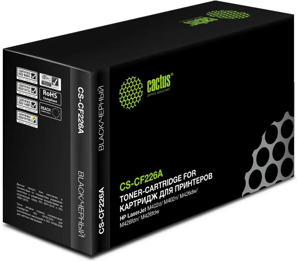 Доставка в 75000 населённых пунктов, ТК СДЭК, Яндекс и Почта РФ Все формы оплаты для физических и юридических лиц! Онлайн конфигураторы ПК и сервера, бесплатная сборка. Гарантия 2 года! Широкий ассортимент комплектующих. Более 30 лет на рынке! 790 ₽ ID товара: 226822 Картридж Cactus CS-CF226A Black ОсновныеПроизводитель ........................................................................................................................................................................................................ Код производителя ........................................................................................................................................................................................................ CS-CF226A Тип ........................................................................................................................................................................................................ Тип печати ........................................................................................................................................................................................................ Тип совместимости ........................................................................................................................................................................................................ Совместимый производитель ........................................................................................................................................................................................................ HP Цвет ........................................................................................................................................................................................................ чёрный (black) Совместимость ........................................................................................................................................................................................................ HP LaserJet Pro M402d (C5F92A), HP LaserJet Pro M402dn (C5F94A), HP LaserJet Pro M402dne (C5J91A), HP LaserJet Pro M402dw (C5F95A), HP LaserJet Pro M402m (C5F96A), HP LaserJet Pro M402n (C5F93A), HP LaserJet Pro M426dw (F6W16A), HP LaserJet Pro M426fdn (F6W17A), HP LaserJet Pro M426fdw (F6W15A), HP LaserJet Pro M426m (1GP80A) ДополнительноРесурс ........................................................................................................................................................................................................ 3100 стр. Количество в упаковке ........................................................................................................................................................................................................ 1 шт. Сайт производителя ........................................................................................................................................................................................................ |