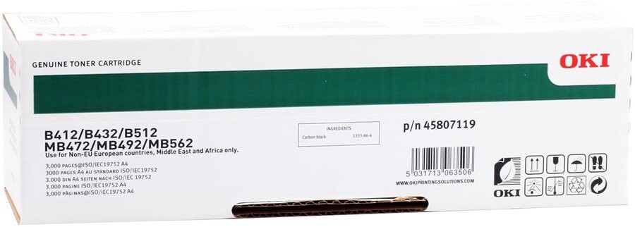Доставка в 75000 населённых пунктов, ТК СДЭК, Яндекс и Почта РФ Все формы оплаты для физических и юридических лиц! Онлайн конфигуратор ПК, бесплатная сборка. Гарантия 2 года! Широкий ассортимент комплектующих. Более 30 лет на рынке! 11 500 ₽ ID товара: 231857 Картридж OKI 45807119/45807102 Black ОсновныеПроизводитель ........................................................................................................................................................................................................ Код производителя ........................................................................................................................................................................................................ 45807119/45807102 Тип ........................................................................................................................................................................................................ Тип печати ........................................................................................................................................................................................................ Тип совместимости ........................................................................................................................................................................................................ Совместимый производитель ........................................................................................................................................................................................................ OKI Цвет ........................................................................................................................................................................................................ чёрный (black) Совместимость ........................................................................................................................................................................................................ OKI B412, OKI B412dn, OKI B432, OKI B512, OKI MB472, OKI MB472dnw, OKI MB492, OKI MB492dn, OKI MB562 ДополнительноРесурс ........................................................................................................................................................................................................ 3000 стр. Количество в упаковке ........................................................................................................................................................................................................ 1 шт. Сайт производителя ........................................................................................................................................................................................................ |