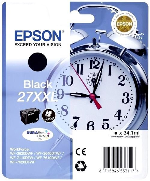Доставка в 75000 населённых пунктов, ТК СДЭК, Яндекс и Почта РФ Все формы оплаты для физических и юридических лиц! Онлайн конфигуратор ПК, бесплатная сборка. Гарантия 2 года! Широкий ассортимент комплектующих. Более 30 лет на рынке! ID товара: 248810 Картридж Epson C13T27914022 Black ОсновныеПроизводитель ........................................................................................................................................................................................................ Код производителя ........................................................................................................................................................................................................ C13T27914022 Тип ........................................................................................................................................................................................................ Тип печати ........................................................................................................................................................................................................ Тип совместимости ........................................................................................................................................................................................................ Совместимый производитель ........................................................................................................................................................................................................ Epson Цвет ........................................................................................................................................................................................................ чёрный (black) Совместимость ........................................................................................................................................................................................................ Epson WorkForce WF-3620DWF, Epson WorkForce WF-3640DTWF, Epson WorkForce WF-7110DTW, Epson WorkForce WF-7210DTW, Epson WorkForce WF-7610DWF, Epson WorkForce WF-7620DTWF, Epson WorkForce WF-7710DWF, Epson WorkForce WF-7720DTWF ДополнительноРесурс ........................................................................................................................................................................................................ 2200 стр. Ёмкость ........................................................................................................................................................................................................ 34.1 мл Количество в упаковке ........................................................................................................................................................................................................ 1 шт. Сайт производителя ........................................................................................................................................................................................................ |