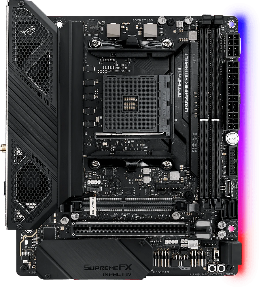 Доставка в 75000 населённых пунктов, ТК СДЭК, Яндекс и Почта РФ Все формы оплаты для физических и юридических лиц! Онлайн конфигураторы ПК и сервера, бесплатная сборка. Гарантия 2 года! Широкий ассортимент комплектующих. Более 30 лет на рынке! 19 570 ₽ ID товара: 335453 Материнская плата ASUS ROG CROSSHAIR VIII IMPACT ОсновныеПроизводитель ........................................................................................................................................................................................................ Код производителя ........................................................................................................................................................................................................ ROG CROSSHAIR VIII IMPACT Сокет ........................................................................................................................................................................................................ Чипсет ........................................................................................................................................................................................................ ПамятьТип памяти ........................................................................................................................................................................................................ Количество слотов памяти ........................................................................................................................................................................................................ Максимальный объём поддерживаемой памяти ........................................................................................................................................................................................................ 64 ГБ Дисковые контроллерыКонтроллер SATA ........................................................................................................................................................................................................ 4 x SATA-III (6 Гб/с) Поддержка RAID ........................................................................................................................................................................................................ 0, 1, 10 Слоты расширенияСлоты расширения ........................................................................................................................................................................................................ PCI-E 4.0 x16, 2 x PCI-E M.2 Тип слотов M.2 ........................................................................................................................................................................................................ 2 x 2242/2260/2280 (PCI-E 4.0 x4 & SATA) Поддерживаемые режимы PCI Express ........................................................................................................................................................................................................ 3rd Gen AMD Ryzen™ Processors: - 1 x PCIe 4.0 x16 (x16 mode); 2nd Gen AMD Ryzen™ Processors: - 1 x PCIe 3.0 x16 (x16 mode); 2nd and 1st Gen AMD Ryzen™ with Radeon™ Vega Graphics Processors: - 1 x PCIe 3.0 x16 (x8 mode). Аудио/ВидеоИнтегрированное видео ........................................................................................................................................................................................................ Звук ........................................................................................................................................................................................................ Аудио-контроллер ........................................................................................................................................................................................................ СетьСетевой интерфейс ........................................................................................................................................................................................................ Gigabit Ethernet (1 Гб/с), Wi-Fi, Bluetooth Сетевой контроллер ........................................................................................................................................................................................................ Intel I211AT Версия Wi-Fi ........................................................................................................................................................................................................ 6 Версия Bluetooth ........................................................................................................................................................................................................ 5.0 ИнтерфейсыРазъёмы на задней панели ........................................................................................................................................................................................................ 2 x USB 3.2 Gen1, 5 x USB 3.2 Gen2, USB 3.2 Gen2 Type-C, RJ-45, S/PDIF (оптический) ДополнительноРадиатор на подсистеме питания (мосфетах) .....................................