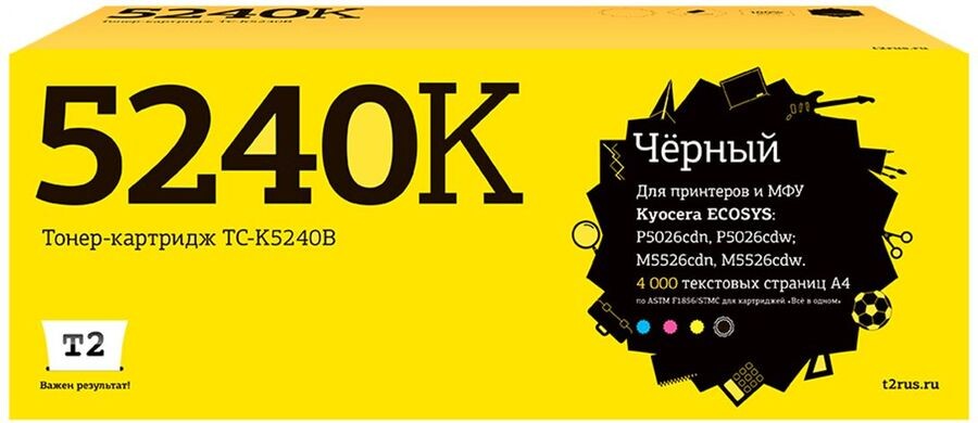 Доставка в 75000 населённых пунктов, ТК СДЭК, Яндекс и Почта РФ Все формы оплаты для физических и юридических лиц! Онлайн конфигураторы ПК и сервера, бесплатная сборка. Гарантия 2 года! Широкий ассортимент комплектующих. Более 30 лет на рынке! 1 180 ₽ ID товара: 398534 Картридж T2 TC-K5240 Black ОсновныеПроизводитель ........................................................................................................................................................................................................ Код производителя ........................................................................................................................................................................................................ TC-K5240B Тип ........................................................................................................................................................................................................ Тип печати ........................................................................................................................................................................................................ Тип совместимости ........................................................................................................................................................................................................ Совместимый производитель ........................................................................................................................................................................................................ Kyocera Цвет ........................................................................................................................................................................................................ чёрный (black) Совместимость ........................................................................................................................................................................................................ Kyocera Ecosys M5526cdn, Kyocera Ecosys M5526cdn/a, Kyocera Ecosys M5526cdw, Kyocera Ecosys M5526cdw/a, Kyocera Ecosys P5026cdn, Kyocera Ecosys P5026cdw ДополнительноРесурс ........................................................................................................................................................................................................ 4000 стр. Количество в упаковке ........................................................................................................................................................................................................ 1 шт. Сайт производителя ........................................................................................................................................................................................................ |
