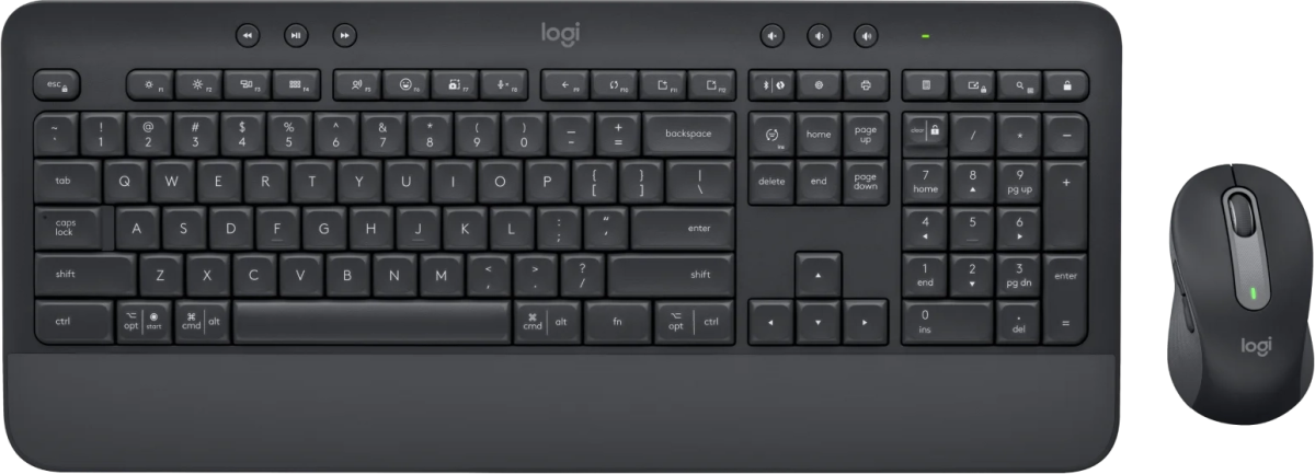 Доставка в 75000 населённых пунктов, ТК СДЭК, Яндекс и Почта РФ Все формы оплаты для физических и юридических лиц! Онлайн конфигураторы ПК и сервера, бесплатная сборка. Гарантия 2 года! Широкий ассортимент комплектующих. Более 30 лет на рынке! 7 260 ₽ ID товара: 399015 Клавиатура + мышь Logitech Signature MK650 Combo for Business Graphite ОсновныеПроизводитель ........................................................................................................................................................................................................ Код производителя ........................................................................................................................................................................................................ 920-011013 Тип устройства ........................................................................................................................................................................................................ клавиатура + мышь Тип соединения ........................................................................................................................................................................................................ Интерфейс подключения ........................................................................................................................................................................................................ Bluetooth (без адаптера), USB Тип беспроводной связи ........................................................................................................................................................................................................ Bluetooth, Logi Bolt КлавиатураРазмер клавиатуры ........................................................................................................................................................................................................ Формат клавиатуры ........................................................................................................................................................................................................ ANSI Тип клавиатуры ........................................................................................................................................................................................................ Конструкция ........................................................................................................................................................................................................ классическая Количество клавиш ........................................................................................................................................................................................................ 113 Количество дополнительных клавиш ........................................................................................................................................................................................................ 10 Цифровой блок ........................................................................................................................................................................................................ да МышьТип мыши ........................................................................................................................................................................................................ Дизайн мыши ........................................................................................................................................................................................................ Форма ........................................................................................................................................................................................................ симметричная Разрешение сенсора ........................................................................................................................................................................................................ 4000 dpi Частота опроса ........................................................................................................................................................................................................ 125 Гц Количество кнопок ........................................................................................................................................................................................................ 5 ДополнительноПитание клавиатуры ........................................................................................................................................................................................................ 2xAA Питание мыши ........................................................................................................................................................................................................ 1xAA Цвет ........................................................................................................................................................................................................ серый, чёрный Гарантия ................................................