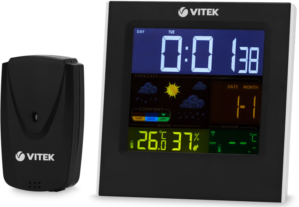 Доставка в 75000 населённых пунктов, ТК СДЭК, Яндекс и Почта РФ Все формы оплаты для физических и юридических лиц! Онлайн конфигуратор ПК, бесплатная сборка. Гарантия 2 года! Широкий ассортимент комплектующих. Более 30 лет на рынке! 2 310 ₽ ID товара: 402002 Метеостанция VITEK VT-6411 ОсновныеПроизводитель ........................................................................................................................................................................................................ Код производителя ........................................................................................................................................................................................................ VT-6411 Тип ........................................................................................................................................................................................................ Измеряемые параметры ........................................................................................................................................................................................................ температура, влажность Функции ........................................................................................................................................................................................................ часы, будильник, календарь, прогноз погоды, уровень комфорта Измерение температуры в помещении ........................................................................................................................................................................................................ до +50 °C Измерение влажности в помещении ........................................................................................................................................................................................................ от 20 до 95 % Измерения вне помещенияВыносной датчик ........................................................................................................................................................................................................ да Измеряемые параметры вне помещения ........................................................................................................................................................................................................ температура Диапазон температуры вне помещения ........................................................................................................................................................................................................ от -35 до +60 °C Подключение датчика ........................................................................................................................................................................................................ беспроводное Количество датчиков в комплекте ........................................................................................................................................................................................................ 1 Радиус действия датчика ........................................................................................................................................................................................................ 30 м ДополнительноЗвуковая индикация ........................................................................................................................................................................................................ да Дисплей ........................................................................................................................................................................................................ цветной Подсветка дисплея ........................................................................................................................................................................................................ да Питание ........................................................................................................................................................................................................ от батареек, от сети Элементы питания базовой станции ........................................................................................................................................................................................................ 3х ААА Элементы питания датчика ........................................................................................................................................................................................................ 2х ААА Дополнительная информация ........................................................................................................................................................................................................ память максимальных и минимальных значений, сетевой адаптер и элементы питания в комплект не входят Гарантия ................................