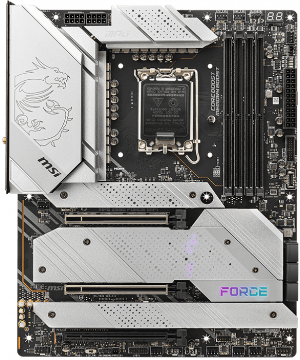 Доставка в 35000 населённых пунктов, ТК СДЭК и Boxberry Все формы оплаты для физических и юридических лиц! Онлайн конфигуратор ПК, бесплатная сборка. Гарантия 2 года! Широкий ассортимент комплектующих. Более 30 лет на рынке! ID товара: 417835 Материнская плата MSI MPG Z690 FORCE WIFI ОсновныеПроизводитель ........................................................................................................................................................................................................ Код производителя ........................................................................................................................................................................................................ MPG Z690 FORCE WIFI Socket ........................................................................................................................................................................................................ Чипсет ........................................................................................................................................................................................................ ПамятьТип памяти ........................................................................................................................................................................................................ Количество слотов памяти ........................................................................................................................................................................................................ Дисковые контроллерыКонтроллер SATA ........................................................................................................................................................................................................ 6 x SATA-III (6 Гб/с) Поддержка RAID ........................................................................................................................................................................................................ 0, 1, 10 Слоты расширенияСлоты расширения ........................................................................................................................................................................................................ 2 x PCI-E 5.0 x16, PCI-E 3.0 x16, 5 x PCI-E M.2 Тип слотов M.2 ........................................................................................................................................................................................................ Key M, 2260/2280/22110 (PCIe 4.0 x4); Key M, 2260/2280 (PCIe 4.0 x4); Key M, 2242/2260/2280/22110 (PCIe 4.0 x4); Key M, 2242/2260/2280 (PCIe 3.0 x4 & SATA); Key M, 2260/2280 (PCIe 4.0 x4 & SATA). Поддерживаемые режимы PCI-Express ........................................................................................................................................................................................................ x16/x0/x4, x8/x8/x4 Аудио/ВидеоИнтегрированное видео ........................................................................................................................................................................................................ Звук ........................................................................................................................................................................................................ Аудио-контроллер ........................................................................................................................................................................................................ СетьСетевой интерфейс ........................................................................................................................................................................................................ 2.5 Gigabit Ethernet (2.5 Гбит/с), Wi-Fi, Bluetooth Сетевой контроллер ........................................................................................................................................................................................................ Intel I225-V ИнтерфейсыРазъёмы на задней панели ........................................................................................................................................................................................................ 4 x USB 2.0, 5 x USB 3.2 Gen2, USB 3.2 Gen2x2 Type-C, HDMI, DisplayPort, RJ-45, S/PDIF (оптический) ДополнительноРадиатор на подсистеме питания (мосфетах) ........................................................................................................................................................................................................ да Разъёмы для подключения вентиляторов корпуса ........................................................................................................................................................................................................ 6 x 4-pin Разъём питания ATX 12 В ........................................................................................................................................................................................................ 2 x 8-pin Внутренние разъёмы USB на плате .............................................