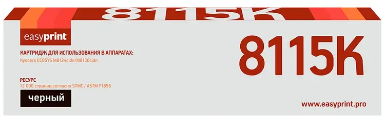 Доставка в 35000 населённых пунктов, ТК СДЭК и Boxberry Все формы оплаты для физических и юридических лиц! Онлайн конфигуратор ПК, бесплатная сборка. Гарантия 2 года! Широкий ассортимент комплектующих. Более 30 лет на рынке! 1 550 ₽ ID товара: 432352 Картридж EasyPrint LK-8115K Black ОсновныеПроизводитель ........................................................................................................................................................................................................ Код производителя ........................................................................................................................................................................................................ LK-8115K Тип ........................................................................................................................................................................................................ Тип печати ........................................................................................................................................................................................................ Тип совместимости ........................................................................................................................................................................................................ Совместимый производитель ........................................................................................................................................................................................................ Kyocera Цвет ........................................................................................................................................................................................................ чёрный (black) Совместимость ........................................................................................................................................................................................................ Kyocera Ecosys M8124cidn, Kyocera Ecosys M8124cidn Asia, Kyocera Ecosys M8130cidn ДополнительноРесурс ........................................................................................................................................................................................................ 12000 стр. Количество в упаковке ........................................................................................................................................................................................................ 1 шт. Сайт производителя ........................................................................................................................................................................................................ |