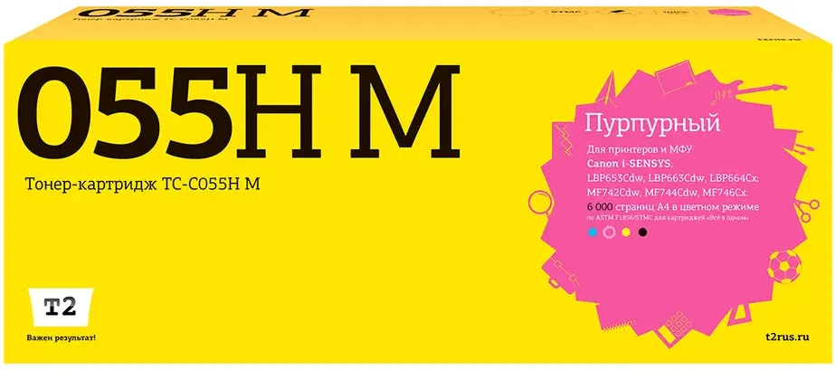 Доставка в 75000 населённых пунктов, ТК СДЭК, Яндекс и Почта РФ Все формы оплаты для физических и юридических лиц! Онлайн конфигураторы ПК и сервера, бесплатная сборка. Гарантия 2 года! Широкий ассортимент комплектующих. Более 30 лет на рынке! 1 770 ₽ ID товара: 446087 Картридж T2 TC-C055H Magenta ОсновныеПроизводитель ........................................................................................................................................................................................................ Код производителя ........................................................................................................................................................................................................ TC-C055HM Тип ........................................................................................................................................................................................................ Тип печати ........................................................................................................................................................................................................ Тип совместимости ........................................................................................................................................................................................................ Совместимый производитель ........................................................................................................................................................................................................ Canon Цвет ........................................................................................................................................................................................................ пурпурный (magenta) Совместимость ........................................................................................................................................................................................................ Canon i-SENSYS LBP-653Cdw, Canon i-SENSYS LBP663Cdw, Canon i-SENSYS MF744Cdw (3101C031), Canon i-SENSYS MF744Cdw (3101C042), Canon i-SENSYS MF744Cdw (3101C064) ДополнительноРесурс ........................................................................................................................................................................................................ 6000 стр. Количество в упаковке ........................................................................................................................................................................................................ 1 шт. Сайт производителя ........................................................................................................................................................................................................ |