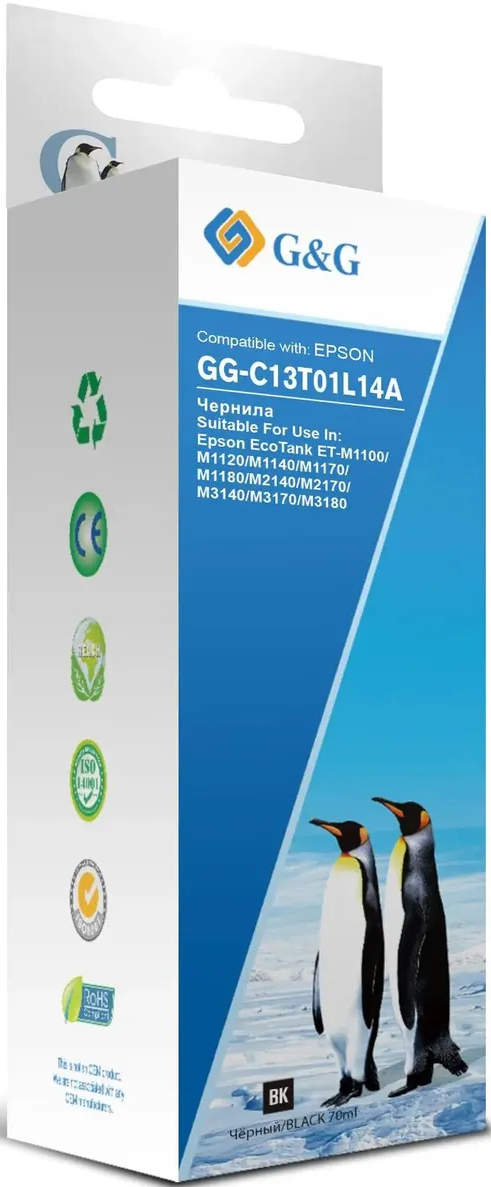 Доставка в 75000 населённых пунктов, ТК СДЭК, Яндекс и Почта РФ Все формы оплаты для физических и юридических лиц! Онлайн конфигураторы ПК и сервера, бесплатная сборка. Гарантия 2 года! Широкий ассортимент комплектующих. Более 30 лет на рынке! 360 ₽ ID товара: 446919 Чернила G&G GG-C13T01L14A Black ОсновныеПроизводитель ........................................................................................................................................................................................................ Код производителя ........................................................................................................................................................................................................ GG-C13T01L14A Тип ........................................................................................................................................................................................................ Тип печати ........................................................................................................................................................................................................ Тип совместимости ........................................................................................................................................................................................................ Совместимый производитель ........................................................................................................................................................................................................ Epson Цвет ........................................................................................................................................................................................................ чёрный (black) Совместимость ........................................................................................................................................................................................................ Epson M1100, Epson M1120, Epson M1140, Epson M1170, Epson M1180, Epson M2120, Epson M2140, Epson M2170 (C11CH43404), Epson M3140 (C11CG91405), Epson M3170 (C11CG92405/C11CG92501), Epson M3180 ДополнительноЁмкость ........................................................................................................................................................................................................ 70 мл Количество в упаковке ........................................................................................................................................................................................................ 1 шт. Сайт производителя ........................................................................................................................................................................................................ |