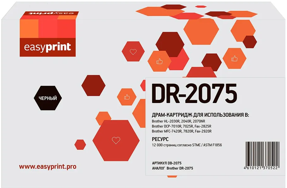 Доставка в 75000 населённых пунктов, ТК СДЭК, Яндекс и Почта РФ Все формы оплаты для физических и юридических лиц! Онлайн конфигуратор ПК, бесплатная сборка. Гарантия 2 года! Широкий ассортимент комплектующих. Более 30 лет на рынке! 900 ₽ ID товара: 449294 Фотобарабан EasyPrint DR-2075 Black ОсновныеПроизводитель ........................................................................................................................................................................................................ Код производителя ........................................................................................................................................................................................................ DB-2075 Тип ........................................................................................................................................................................................................ Тип печати ........................................................................................................................................................................................................ Тип совместимости ........................................................................................................................................................................................................ Совместимый производитель ........................................................................................................................................................................................................ Brother Цвет ........................................................................................................................................................................................................ чёрный (black) Совместимость ........................................................................................................................................................................................................ Brother DCP-7010R, Brother DCP-7025R, Brother HL-2030R, Brother HL-2040R, Brother HL-2070NR, Brother MFC-7420R, Brother MFC-7820R ДополнительноРесурс ........................................................................................................................................................................................................ 12000 стр. Количество в упаковке ........................................................................................................................................................................................................ 1 шт. Сайт производителя ........................................................................................................................................................................................................ |