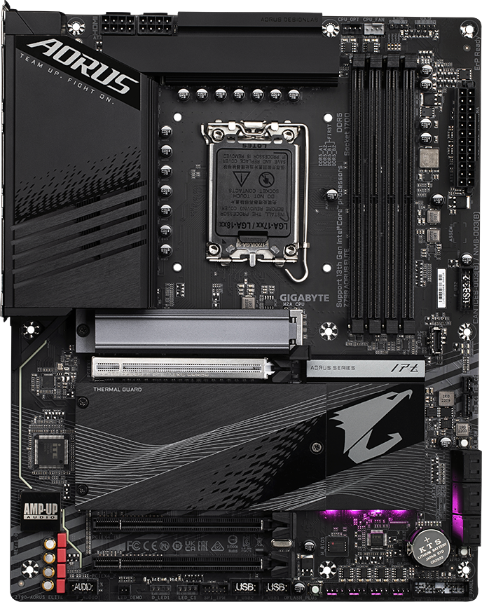 Доставка в 75000 населённых пунктов, ТК СДЭК, Яндекс и Почта РФ Все формы оплаты для физических и юридических лиц! Онлайн конфигуратор ПК, бесплатная сборка. Гарантия 2 года! Широкий ассортимент комплектующих. Более 30 лет на рынке! ID товара: 467028 Материнская плата Gigabyte Z790 AORUS ELITE ОсновныеПроизводитель ........................................................................................................................................................................................................ Код производителя ........................................................................................................................................................................................................ Z790 AORUS ELITE Socket ........................................................................................................................................................................................................ Чипсет ........................................................................................................................................................................................................ ПамятьТип памяти ........................................................................................................................................................................................................ Количество слотов памяти ........................................................................................................................................................................................................ Дисковые контроллерыКонтроллер SATA ........................................................................................................................................................................................................ 6 x SATA-III (6 Гб/с) Поддержка RAID ........................................................................................................................................................................................................ 0, 1, 5, 10 Слоты расширенияСлоты расширения ........................................................................................................................................................................................................ PCI-E 5.0 x16, PCI-E 4.0 x16, PCI-E 3.0 x16, 4 x PCI-E M.2 Тип слотов M.2 ........................................................................................................................................................................................................ - Socket 3, M key, 22110/2280 (PCIe 4.0 x4/x2); - Socket 3, M key, 22110/2280 (PCIe 4.0 x4/x2); - Socket 3, M key, 22110/2280 (PCIe 4.0 x4/x2); - Socket 3, M key, 22110/2280 (SATA & PCIe 4.0 x4). Поддерживаемые режимы PCI-Express ........................................................................................................................................................................................................ x16/x4/x4 Аудио/ВидеоИнтегрированное видео ........................................................................................................................................................................................................ Звук ........................................................................................................................................................................................................ Аудио-контроллер ........................................................................................................................................................................................................ СетьСетевой интерфейс ........................................................................................................................................................................................................ 2.5 Gigabit Ethernet (2.5 Гбит/с) Сетевой контроллер ........................................................................................................................................................................................................ Realtek ИнтерфейсыРазъёмы на задней панели ........................................................................................................................................................................................................ 4 x USB 2.0, 3 x USB 3.2 Gen1, 2 x USB 3.2 Gen2, USB 3.2 Gen2x2 Type-C, HDMI, DisplayPort, RJ-45, S/PDIF (оптический) ДополнительноРадиатор на подсистеме питания (мосфетах) ........................................................................................................................................................................................................ да Разъёмы для подключения вентиляторов корпуса ........................................................................................................................................................................................................ 4 x 4-pin Разъём питания ATX 12 В ........................................................................................................................................................................................................ 2 x 8-pin Внутренние разъёмы USB на плате ..........................