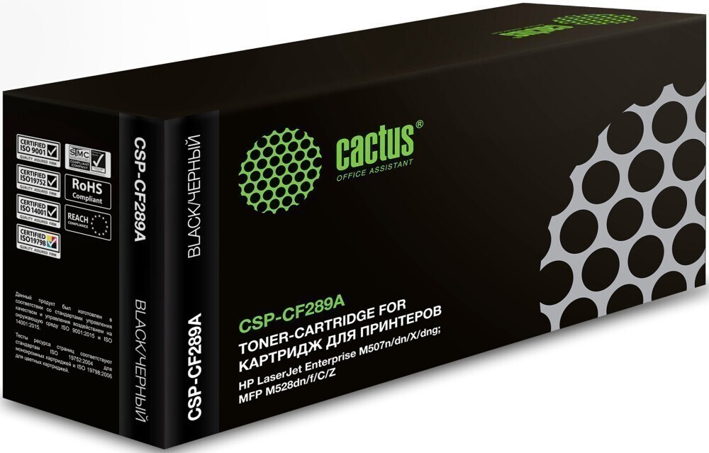 Доставка в 75000 населённых пунктов, ТК СДЭК, Яндекс и Почта РФ Все формы оплаты для физических и юридических лиц! Онлайн конфигуратор ПК, бесплатная сборка. Гарантия 2 года! Широкий ассортимент комплектующих. Более 30 лет на рынке! 1 880 ₽ ID товара: 479808 Картридж Cactus CSP-CF289A Black ОсновныеПроизводитель ........................................................................................................................................................................................................ Код производителя ........................................................................................................................................................................................................ CSP-CF289A Тип ........................................................................................................................................................................................................ Тип печати ........................................................................................................................................................................................................ Тип совместимости ........................................................................................................................................................................................................ Совместимый производитель ........................................................................................................................................................................................................ HP Цвет ........................................................................................................................................................................................................ чёрный (black) Совместимость ........................................................................................................................................................................................................ HP LaserJet Enterprise Flow M528c (1PV66A), HP LaserJet Enterprise M507dn (1PV87A), HP LaserJet Enterprise M507dng (1PV89A) , HP LaserJet Enterprise M507n (1PV86A), HP LaserJet Enterprise M528dn (1PV64A), HP LaserJet Enterprise M528f (1PV65A) ДополнительноРесурс ........................................................................................................................................................................................................ 5000 стр. Количество в упаковке ........................................................................................................................................................................................................ 1 шт. Сайт производителя ........................................................................................................................................................................................................ |