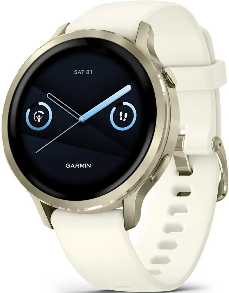 Доставка в 75000 населённых пунктов, ТК СДЭК, Яндекс и Почта РФ Все формы оплаты для физических и юридических лиц! Онлайн конфигураторы ПК и сервера, бесплатная сборка. Гарантия 2 года! Широкий ассортимент комплектующих. Более 30 лет на рынке! 50 980 ₽ ID товара: 494251 Умные часы Garmin Venu 4 41mm Lunar Gold with Bone Silicone Band ОсновныеПроизводитель ........................................................................................................................................................................................................ Код производителя ........................................................................................................................................................................................................ 010-03013-00 Тип ........................................................................................................................................................................................................ Совместимость с ОС ........................................................................................................................................................................................................ Android, iOS Материал корпуса ........................................................................................................................................................................................................ Материал браслета/ремешка ........................................................................................................................................................................................................ ЭкранДиагональ ........................................................................................................................................................................................................ 1.2" Разрешение ........................................................................................................................................................................................................ 390х390 Сенсорный экран ........................................................................................................................................................................................................ да Тип экрана ........................................................................................................................................................................................................ AMOLED Always-On Display ........................................................................................................................................................................................................ да СвязьБеспроводная связь ........................................................................................................................................................................................................ Wi-Fi, Bluetooth Навигация ........................................................................................................................................................................................................ Beidou, GPS, Galileo, QZSS, ГЛОНАСС Память и процессорОбъём памяти ........................................................................................................................................................................................................ 8 Гб ПитаниеВремя работы ........................................................................................................................................................................................................ 6 ч Время работы в режиме ожидания ........................................................................................................................................................................................................ 432 ч ФункцииМониторинг ........................................................................................................................................................................................................ калорий, пройденных шагов, сна, стресса, уровня кислорода в крови, физической активности, циклов Датчики ........................................................................................................................................................................................................ акселерометр, высотомер, гироскоп, датчик освещённости, компас, пульсометр, термометр ДополнительноВлагозащита ........................................................................................................................................................................................................ да, ATM Встроенный динамик ........................................................................................................................................................................................................ да Встроенный микрофон ........................................................................................................................................................................................................ да Размер корпуса ......