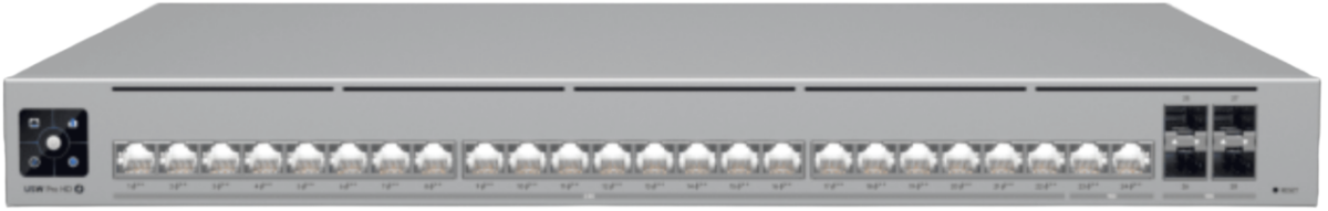 Доставка в 75000 населённых пунктов, ТК СДЭК, Яндекс и Почта РФ Все формы оплаты для физических и юридических лиц! Онлайн конфигураторы ПК и сервера, бесплатная сборка. Гарантия 2 года! Широкий ассортимент комплектующих. Более 30 лет на рынке! 132 540 ₽ ID товара: 494756 Коммутатор (свитч) Ubiquiti UniFi Switch Pro HD 24 PoE ОсновныеПроизводитель ........................................................................................................................................................................................................ Код производителя ........................................................................................................................................................................................................ USW-Pro-HD-24-PoE Уровень коммутатора ........................................................................................................................................................................................................ Возможность установки в стойку ........................................................................................................................................................................................................ да Высота ........................................................................................................................................................................................................ 1U Внутренняя пропускная способность ........................................................................................................................................................................................................ Максимальная скорость Ethernet ........................................................................................................................................................................................................ ИнтерфейсыОбщее количество портов передачи данных ........................................................................................................................................................................................................ Тип портов ........................................................................................................................................................................................................ RJ-45, SFP+ Количество портов RJ-45 (2.5 Гбит/с) ........................................................................................................................................................................................................ Количество портов SFP+ (10 Гбит/с) ........................................................................................................................................................................................................ Стандарты и функцииПоддержка VLAN (IEEE 802.1q) ........................................................................................................................................................................................................ да Поддержка PoE ........................................................................................................................................................................................................ да Количество портов с поддержкой PoE (исходящий) ........................................................................................................................................................................................................ Выходная мощность PoE (общий бюджет) ........................................................................................................................................................................................................ 600 Вт Максимальная выходная мощность PoE (на порт) ........................................................................................................................................................................................................ 2 x 60 Вт, 22 x 30 Вт ПротоколыПоддержка DHCP ........................................................................................................................................................................................................ да ДополнительноДополнительная информация ........................................................................................................................................................................................................ сенсорный экран 1.3" Размеры (ШхВхГ) ........................................................................................................................................................................................................ 443 x 44 x 400 мм Вес ........................................................................................................................................................................................................ 6.4 кг Гарантия ........................................................................................................................................................................................................ 12 мес. Сайт производителя ..............