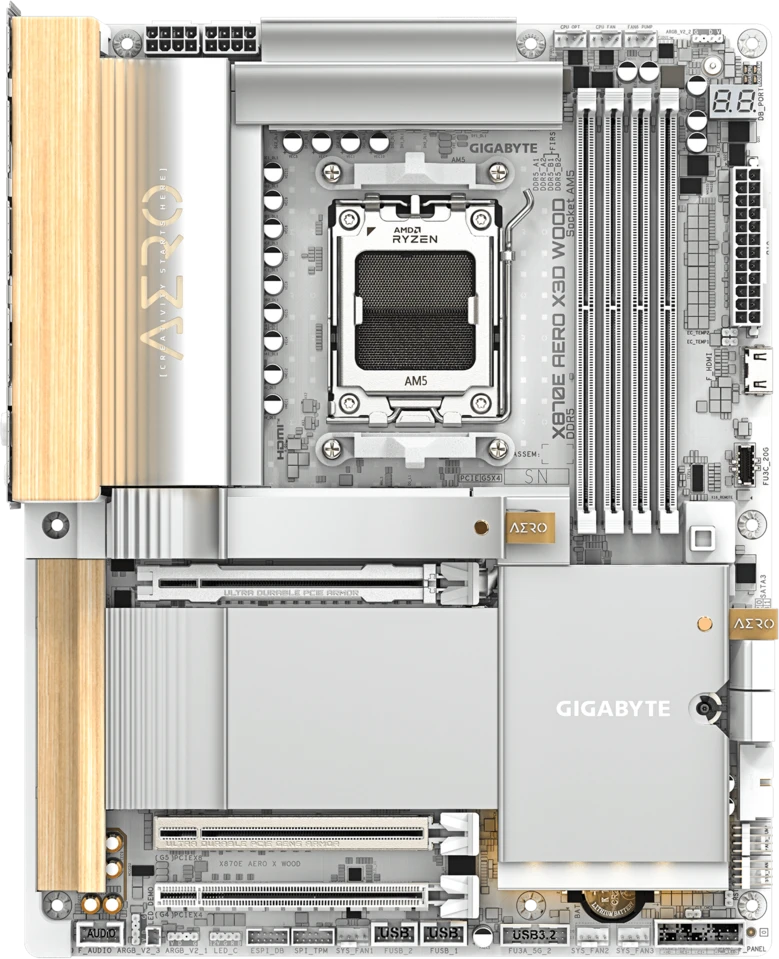 Доставка в 75000 населённых пунктов, ТК СДЭК, Яндекс и Почта РФ Все формы оплаты для физических и юридических лиц! Онлайн конфигураторы ПК и сервера, бесплатная сборка. Гарантия 2 года! Широкий ассортимент комплектующих. Более 30 лет на рынке! 39 060 ₽ ID товара: 494811 Материнская плата Gigabyte X870E AERO X3D WOOD ОсновныеПроизводитель ........................................................................................................................................................................................................ Код производителя ........................................................................................................................................................................................................ X870E AERO X3D WOOD Сокет ........................................................................................................................................................................................................ Чипсет ........................................................................................................................................................................................................ ПамятьТип памяти ........................................................................................................................................................................................................ Количество слотов памяти ........................................................................................................................................................................................................ Максимальный объём поддерживаемой памяти ........................................................................................................................................................................................................ 256 Гб Поддержка ........................................................................................................................................................................................................ AMD EXPO, Intel XMP Дисковые контроллерыКонтроллер SATA ........................................................................................................................................................................................................ 4 x SATA-III (6 Гб/с) Поддержка RAID ........................................................................................................................................................................................................ 0, 1, 10 Слоты расширенияСлоты расширения ........................................................................................................................................................................................................ 2 x PCI-E 5.0 x16, PCI-E 4.0 x16, 4 x PCI-E M.2 Тип слотов M.2 ........................................................................................................................................................................................................ - Socket 3, M key, 2580/2280 (PCIe 5.0 x4/x2); - Socket 3, M key, 22110/2280 (PCIe 5.0 x4/x2); - Socket 3, M key, 22110/2280 (PCIe 4.0 x4/x2); - Socket 3, M key, 22110/2280 (PCIe 4.0 x4/x2). Поддерживаемые режимы PCI-Express ........................................................................................................................................................................................................ x16/x8/x4 Аудио/ВидеоИнтегрированное видео ........................................................................................................................................................................................................ Звук ........................................................................................................................................................................................................ Аудио-контроллер ........................................................................................................................................................................................................ СетьСетевой интерфейс ........................................................................................................................................................................................................ 2 x 5 Gigabit Ethernet (5 Гбит/с), Wi-Fi, Bluetooth Сетевой контроллер ........................................................................................................................................................................................................ Realtek Версия Wi-Fi ........................................................................................................................................................................................................ 7, для правильной работы функций Wi-Fi 7 требуется Windows 11 SV3 (драйвер для Windows 10 не поддерживается) Версия Bluetooth ........................................................................................................................................................................................................ 5.4 ИнтерфейсыРазъёмы на задней панели ..............................................................................