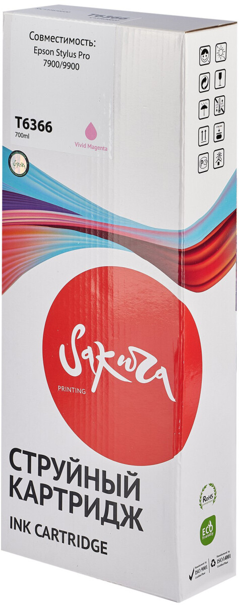 Доставка в 75000 населённых пунктов, ТК СДЭК, Яндекс и Почта РФ Все формы оплаты для физических и юридических лиц! Онлайн конфигураторы ПК и сервера, бесплатная сборка. Гарантия 2 года! Широкий ассортимент комплектующих. Более 30 лет на рынке! 5 320 ₽ ID товара: 535372 Картридж Sakura SIC13T636600 Vivid Light Magenta ОсновныеПроизводитель ........................................................................................................................................................................................................ Код производителя ........................................................................................................................................................................................................ SIC13T636600 Тип ........................................................................................................................................................................................................ Тип печати ........................................................................................................................................................................................................ Тип совместимости ........................................................................................................................................................................................................ Совместимый производитель ........................................................................................................................................................................................................ Epson Цвет ........................................................................................................................................................................................................ светло-пурпурный (vivid light magenta) Совместимость ........................................................................................................................................................................................................ Epson Stylus Pro 7900, Epson Stylus Pro 9900 ДополнительноЁмкость ........................................................................................................................................................................................................ 700 мл Количество в упаковке ........................................................................................................................................................................................................ 1 шт. Сайт производителя ........................................................................................................................................................................................................ |