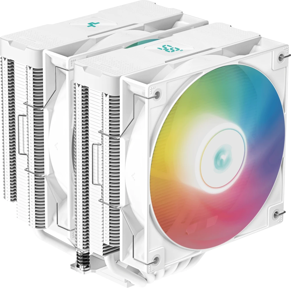 Доставка в 75000 населённых пунктов, ТК СДЭК, Яндекс и Почта РФ Все формы оплаты для физических и юридических лиц! Онлайн конфигураторы ПК и сервера, бесплатная сборка. Гарантия 2 года! Широкий ассортимент комплектующих. Более 30 лет на рынке! 6 070 ₽ ID товара: 659657 Кулер DeepCool AG620 DIGITAL WH ARGB ОсновныеПроизводитель ........................................................................................................................................................................................................ Назначение ........................................................................................................................................................................................................ для процессора Socket ........................................................................................................................................................................................................ LGA 115x/1200, LGA 1700, 1851, AM4, AM5 Система охлаждения ........................................................................................................................................................................................................ Максимальная рассеиваемая мощность ........................................................................................................................................................................................................ 260 Вт Тепловые трубки ........................................................................................................................................................................................................ да Материал радиатора ........................................................................................................................................................................................................ Количество вентиляторов ........................................................................................................................................................................................................ Размеры вентилятора ........................................................................................................................................................................................................ Скорость вращения вентилятора ........................................................................................................................................................................................................ 300-1950 об/мин Уровень шума вентилятора ........................................................................................................................................................................................................ 29.4 дБ Воздушный поток ........................................................................................................................................................................................................ 67.88 CFM Тип подшипника ........................................................................................................................................................................................................ ДополнительноТип коннектора ........................................................................................................................................................................................................ 4-pin PWM, 9-pin USB Регулятор оборотов ........................................................................................................................................................................................................ PWM ЖК дисплей ........................................................................................................................................................................................................ да Подсветка ........................................................................................................................................................................................................ разноцветная Тип подсветки ........................................................................................................................................................................................................ ARGB (Addressable RGB) Высота кулера ........................................................................................................................................................................................................ 161 мм Цвета, использованные в оформлении ........................................................................................................................................................................................................ белый Размеры (ШхВхГ) ........................................................................................................................................................................................................ 129 x 161 x 136 мм Гарантия ........................................................................................................................................................................................................ 12 мес. Сайт производите