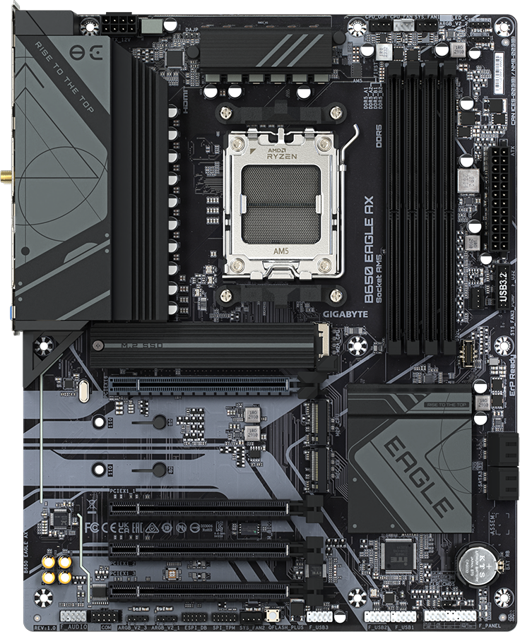 Доставка в 75000 населённых  пунктов, ТК СДЭК, Яндекс и Почта РФ Все формы оплаты для  физических и юридических лиц! Онлайн конфигуратор ПК,  бесплатная сборка. Гарантия 2 года! Широкий ассортимент  комплектующих. Более 30 лет на рынке! 14 920 ₽ ID товара: 664737 Материнская плата Gigabyte B650 EAGLE AX ОсновныеПроизводитель  ........................................................................................................................................................................................................ Код производителя  ........................................................................................................................................................................................................ B650 EAGLE AX Socket  ........................................................................................................................................................................................................ Чипсет  ........................................................................................................................................................................................................ ПамятьТип памяти  ........................................................................................................................................................................................................ Количество слотов памяти  ........................................................................................................................................................................................................ Дисковые контроллерыКонтроллер SATA  ........................................................................................................................................................................................................ 4 x SATA-III (6 Гб/с) Поддержка RAID  ........................................................................................................................................................................................................ 0, 1, 10 Слоты расширенияСлоты расширения  ........................................................................................................................................................................................................ PCI-E 4.0 x16, 3 x PCI-E 3.0 x16, 3 x PCI-E M.2 Тип слотов M.2  ........................................................................................................................................................................................................ - Socket 3, M key, 25110/2580 (PCIe 5.0 x4/x2); - Socket 3, M key, 22110/2280 (PCIe 4.0 x4/x2); - Socket 3, M key, 22110/2280 (PCIe 4.0 x4/x2). Поддерживаемые режимы PCI-Express  ........................................................................................................................................................................................................ x16/x1/x1/x1 Аудио/ВидеоИнтегрированное видео  ........................................................................................................................................................................................................ Звук  ........................................................................................................................................................................................................ Аудио-контроллер  ........................................................................................................................................................................................................ СетьСетевой интерфейс  ........................................................................................................................................................................................................ Gigabit Ethernet (1 Гбит/с), Wi-Fi, Bluetooth Сетевой контроллер  ........................................................................................................................................................................................................ Realtek ИнтерфейсыРазъёмы на задней панели  ........................................................................................................................................................................................................ PS/2, 6 x USB 2.0, USB 3.2 Gen1 Type-C, USB 3.2 Gen2, HDMI, DisplayPort, RJ-45 ДополнительноРадиатор на подсистеме питания (мосфетах)  ........................................................................................................................................................................................................ да Разъёмы для подключения вентиляторов корпуса  ........................................................................................................................................................................................................ 3 x 4-pin Разъём питания ATX 12 В  ........................................................................................................................................................................................................ 8-pin Внутренние разъёмы USB на плате  ........................................................