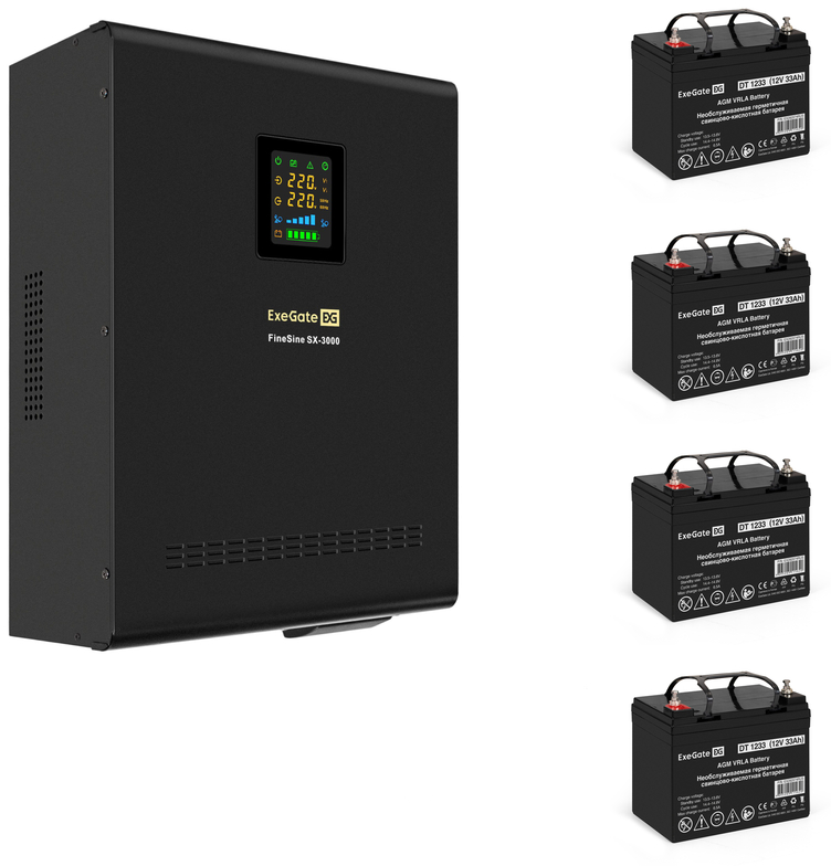 Доставка в 75000 населённых пунктов, ТК СДЭК, Яндекс и Почта РФ Все формы оплаты для физических и юридических лиц! Онлайн конфигуратор ПК, бесплатная сборка. Гарантия 2 года! Широкий ассортимент комплектующих. Более 30 лет на рынке! 39 150 ₽ ID товара: 666956 ИБП + батарея ExeGate FineSine SX-3000.LCD.AVR.2SH.T + 4x DT 1233 (33Ач) ОсновныеПроизводитель ........................................................................................................................................................................................................ Код производителя ........................................................................................................................................................................................................ EX296633RUS Тип ........................................................................................................................................................................................................ Технические характеристикиВыходная мощность (полная) ........................................................................................................................................................................................................ 3000 ВА Выходная мощность (активная) ........................................................................................................................................................................................................ 2100 Вт Форма выходного сигнала ........................................................................................................................................................................................................ синусоида Количество выходных разъемов ........................................................................................................................................................................................................ 2 Количество выходных разъемов с питанием от батарей ........................................................................................................................................................................................................ 2 Тип выходных разъемов питания ........................................................................................................................................................................................................ AVR (автоматическая регулировка напряжения) ........................................................................................................................................................................................................ да Время переключения на батарею ........................................................................................................................................................................................................ 4 мс Вход / ВыходВходное напряжение ........................................................................................................................................................................................................ 140 - 275 В Входная частота ........................................................................................................................................................................................................ 45 - 65 Гц Выходная частота ........................................................................................................................................................................................................ 50/60 ± 0.3 Гц ФункциональностьОтображение информации ........................................................................................................................................................................................................ Холодный старт ........................................................................................................................................................................................................ да БатареяЁмкость ........................................................................................................................................................................................................ 33 Ач, x4 Напряжение ........................................................................................................................................................................................................ 48 В ЗащитаЗащита от перегрузки ........................................................................................................................................................................................................ да Защита от высоковольтных импульсов ........................................................................................................................................................................................................ да Фильтрация помех ........................................................................................................................................................................................................ да Защита от короткого замык