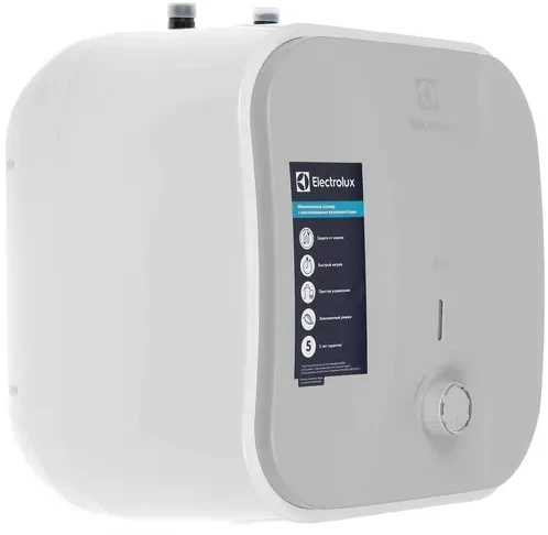 Доставка в 75000 населённых пунктов, ТК СДЭК, Яндекс и Почта РФ Все формы оплаты для физических и юридических лиц! Онлайн конфигураторы ПК и сервера, бесплатная сборка. Гарантия 2 года! Широкий ассортимент комплектующих. Более 30 лет на рынке! 9 040 ₽ ID товара: 67800 Водонагреватель Electrolux EWH 15 Q-bic U ОсновныеПроизводитель ........................................................................................................................................................................................................ Код производителя ........................................................................................................................................................................................................ НС-1147765 Тип водонагревателя ........................................................................................................................................................................................................ Способ нагрева ........................................................................................................................................................................................................ электрический Максимальная температура нагрева воды ........................................................................................................................................................................................................ 75 °C Мощность ........................................................................................................................................................................................................ 2500 Вт Напряжение сети ........................................................................................................................................................................................................ 220 В Управление ........................................................................................................................................................................................................ Объём бака ........................................................................................................................................................................................................ 15 л Установка ........................................................................................................................................................................................................ Способ установки ........................................................................................................................................................................................................ вертикальная Подводка ........................................................................................................................................................................................................ верхняя Присоединительный диаметр ........................................................................................................................................................................................................ 1/2 Давление воды ........................................................................................................................................................................................................ 1-7.5 бар КонструкцияВнутреннее покрытие бака ........................................................................................................................................................................................................ эмаль Тип нагревательного элемента ........................................................................................................................................................................................................ трубчатый ДополнительноТип анода ........................................................................................................................................................................................................ магниевый УЗО ........................................................................................................................................................................................................ да Дополнительная информация ........................................................................................................................................................................................................ медный нагревательный элемент, класс электрозащиты - I, обратный клапан, теплоизоляция 27 мм, минимальная температура нагрева воды 30°С Размеры (ШхВхГ) ........................................................................................................................................................................................................ 368 x 368 x 340 мм Вес ........................................................................................................................................................................................................ 9.6 кг Гарантия .....................................................................