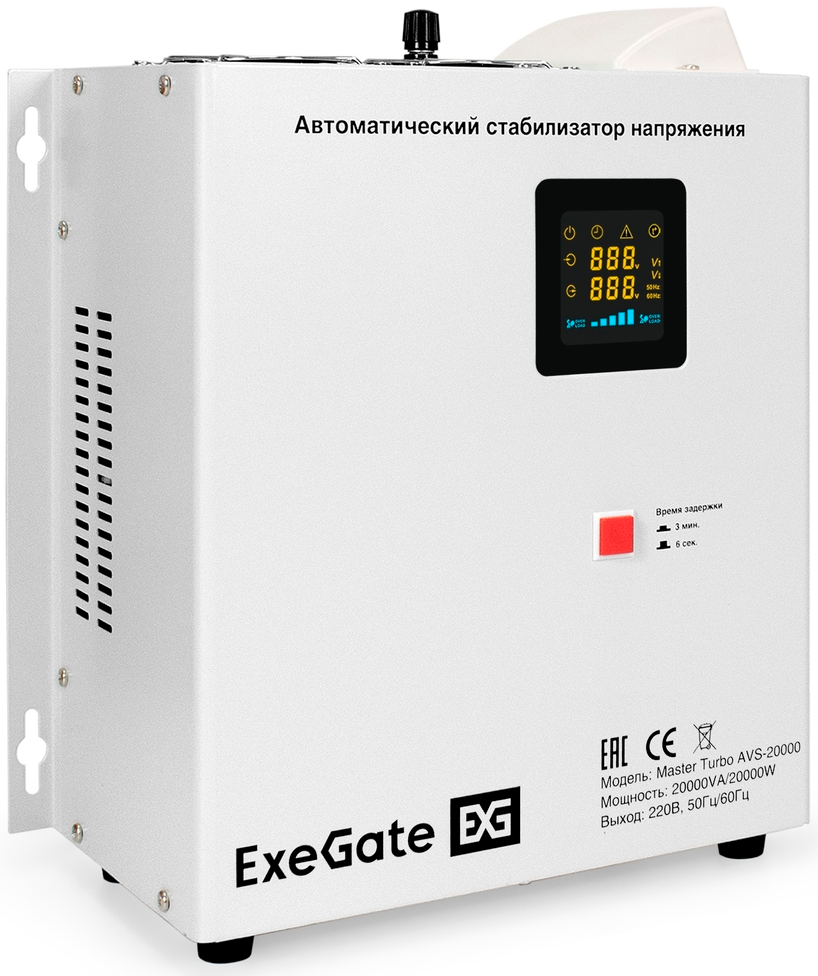 Доставка в 75000 населённых  пунктов, ТК СДЭК, Яндекс и Почта РФ Все формы оплаты для  физических и юридических лиц! Онлайн конфигуратор ПК,  бесплатная сборка. Гарантия 2 года! Широкий ассортимент  комплектующих. Более 30 лет на рынке! 20 870 ₽ ID товара: 683222 Стабилизатор напряжения ExeGate Master Turbo AVS-20000 ОсновныеПроизводитель  ........................................................................................................................................................................................................ Код производителя  ........................................................................................................................................................................................................ EX291767RUS Тип стабилизатора  ........................................................................................................................................................................................................ Полная выходная мощность  ........................................................................................................................................................................................................ 20000 ВА Активная выходная мощность  ........................................................................................................................................................................................................ 20000 Вт Время переключения  ........................................................................................................................................................................................................ 7 мс КПД  ........................................................................................................................................................................................................ 98 % Тип входного напряжения  ........................................................................................................................................................................................................ однофазное Входное напряжение  ........................................................................................................................................................................................................ 100-265 В Выходное напряжение  ........................................................................................................................................................................................................ 220 В, ±8% Способ установки  ........................................................................................................................................................................................................ Разъёмы и функциональностьТип выходных разъёмов питания  ........................................................................................................................................................................................................ Защитные шторки на розетках  ........................................................................................................................................................................................................ да Индикатор включения  ........................................................................................................................................................................................................ да Охлаждение  ........................................................................................................................................................................................................ активное Дисплей/шкала (вольтметр, амперметр)  ........................................................................................................................................................................................................ да Защита от перегрузок  ........................................................................................................................................................................................................ да Защита от перегрева  ........................................................................................................................................................................................................ да Защита от короткого замыкания  ........................................................................................................................................................................................................ да ДополнительноДополнительная информация  ........................................................................................................................................................................................................ температура окр. среды: 0...+40 °С; влажность: от 10% до 102% Размеры (ШхВхГ)  ........................................................................................................................................................................................................ 310 x 312 x 167 мм